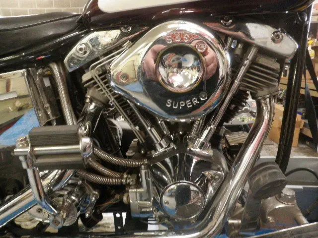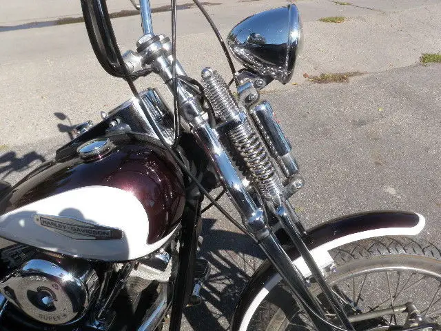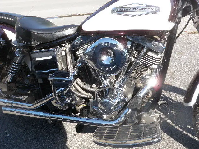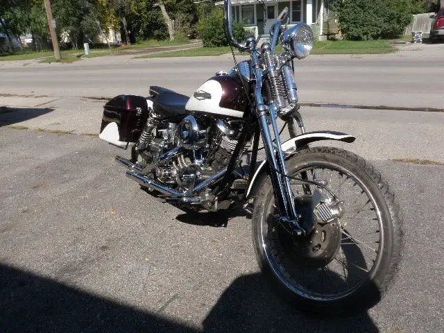 Shovelhead FXE. Frame. engine. and transmission are all matching. Transmission I rebuilt using ALL Andrews gears and shafts. bearings etc. Engine is rebuilt including all new internal parts. Flywheels have been balanced. NEW pistons. valves. etc. Frame is powder coated. Front end is a PAUGHCO Springer w/ 21 inch front wheel NEW GMA brakes front and rear. New PROGRESSIVE shocks. Genuine Harley saddlebags rebuilt with all new hardware and wheatherstrip. New exhaust system. Bike has FL rear fender and footboards. The pictures do not do justice to the Beautiful Root beer brown and cr£me paint job. Has new S&S Super "E" carb.