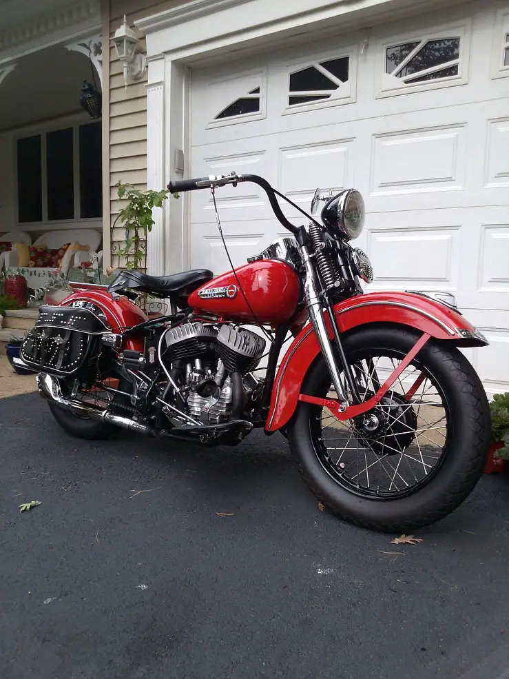 Vintage 1948 RED Harley Davidson - 45ci - original 45 Solo in excellent condition. NO DENTS. NO SCRATCHES!!Show winner!!! - First place in 2013: Vintage Motorcycle - Harley of Long Branch NJ & Second Place in 2014: Vintage Motorcycle - Harley Drags of Raceway Park. NJ. 1. 75 miles rebuilt motor. new Coker tires. powder coated rims/hubs. stainless steel spokes. New red paint - 3 years Saddlebags. after market chrome. nbsp; new Mccooney carbureator. original exhaust. New battery - 6 volt system with electric ignitionNo leaks. no smoke.