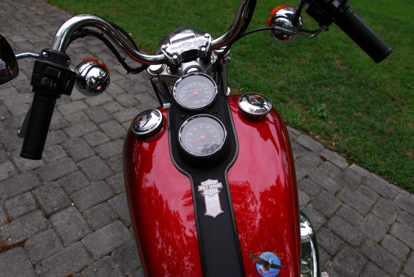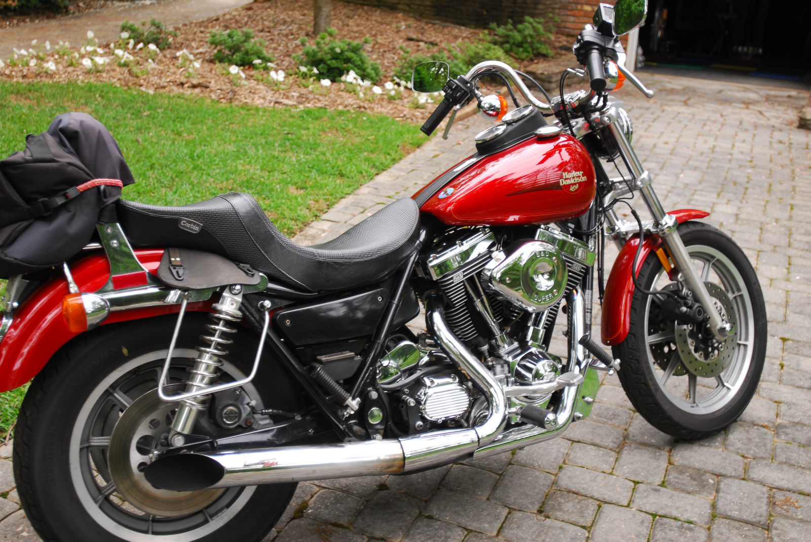 This Low Rider is a true muscle bike with a great balance of power and smoothness. The new S & S 105 was installed by the HD dealer and matched with custom RB 2 in 1 headers - the engine was then tuned by Doc Slicks (best in the Atlanta area). This handles well in traffic. but when you have open road and want to let her gallop - has been dyno'd at 128 lbs torque and will put a smile on your face. Comes with leather saddle bags if you need to trash it up for a trip. In my opinion this frame is one of the best looking and best handling that Harley has ever built.
