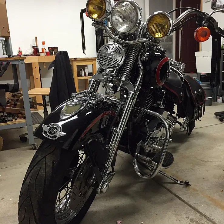 The Heritage Springer Model FLSTS came with a bunch of chrome from the factory. and this bike has a number of 95th anniversary placards/accessories as well. This motorcycle comes with the following additions: