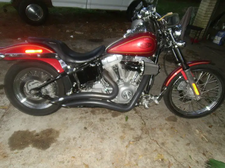 2004 FXSTI SOFTAIL. VANCE& HYNES PIPES. PEFORMANCE MACHINE INTAKE. OILCOOLER ON FRONT. WAITING ON FITTINGS TO HOOK IT UP. SMALL DENT IN LEFT SIDE OF TANK. PAINT PEALING OFF RIGHT SIDE OF OIL CAN. ITS CHROME & IF YOU DONT SAND IT. IT WILL PEAL. CAME FROM HARLEY THAT WAY. OTHER THAN THAT BIKE HAULS ASS. SOUNDS BAD ASS. amp; HAS WOOPED A FEW 103'S ASS'. bike garage kept. well maintained. took oil cooler off. put on lady luck plate holder. must sell to pay doc. bills for mom. bike is reliable does not leak oil. starts up every time. hate to have to sell it. any q's just email me.