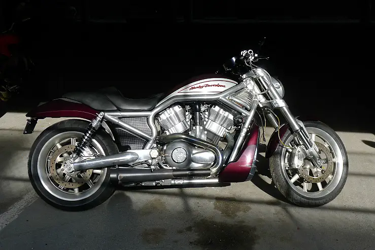 The best Harley V-Rod model ever made. And yet it was produced for only 2 years making it a hard bike to find. Â Many experts consider the short lived VRSCR Harley Street Rod the best of the V-Rod motorcycles ever. Â Strong powerplant. inverted front forks (the only ones for a V-Rod) and amazing Brembo triple disc brakes (2 in front. one out back). Â This one is quite clean with low miles and many upgrades. including about $1. 00 in suspension upgrades (Works Performance billet shocks and Hyperpro Suspension fork upgrades). and high quality Italian Rizoma handlebars and mirrors. Almost new Metzeler tires (less than 100 miles on them) front and back. CFR exhaust (a bit scruffy but very good at making power). Â This motorcycle shows less than 9. 00 miles. but I can not confirm this is accurate as I bought it used a few years ago and put very few miles on it myself. That's why I am now selling it. Â The condition is generally quite good. I have not ridden this bike much in the last year or so . ut kept it well maintained. Fairly new battery. In fact I started it this morning after sitting for months. It immediately started right up and quickly settled to a healthy idle. Â The only real issue (other than the scuffy and loud exhaust). is that the hydraulic clutch master cylinder seal allowed some fluid out causing the paint to bubble up. Â The bike comes with the original owners manual and 2 ignition keys and Harley security key fobs. as well as a battery pig tail to connect to a battery charger. This bike is straight and true and has not been in any accidents or wrecks. Original paint. Very reasonable reserve well below Blue Book pricing.
