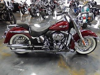 HERE IS ONE SUPER CLEAN BONE STOCK 2009 FLSTN SOFTAIL DELUXE IN THE ONE AND ONLY RED HOT SUNGLO!!! I LOOKED THE BIKE OVER FROM FRONT TO BACK AND THERE ISN'T ONE DING. DENT. OR SCRATCH IN THE PAINT!!! THE CHROME ON THE MOTORCYCLE IS IN VERY GOOD SHAPE AS WELL WITH MINOR PITTING ON THE FRONT FORKS. TAKE A GOOD LOOK AT THE PICTURES. THE BIKE HAS JUST BEEN PUT THROUGH SERVICE AND GIVEN A FULL SAFETY INSPECTION BY OUR HARLEY CERTIFIED TECHS.