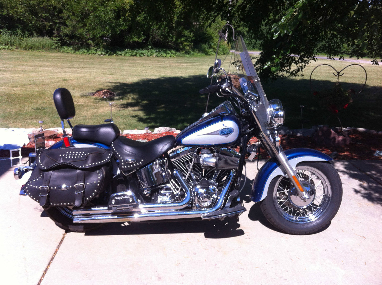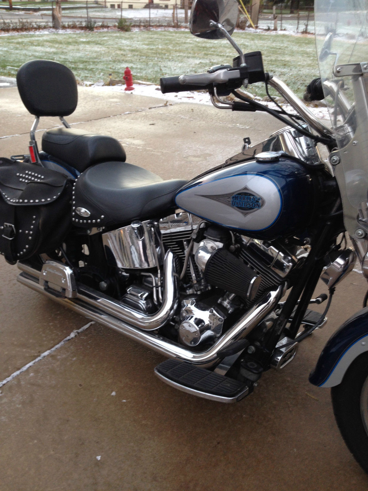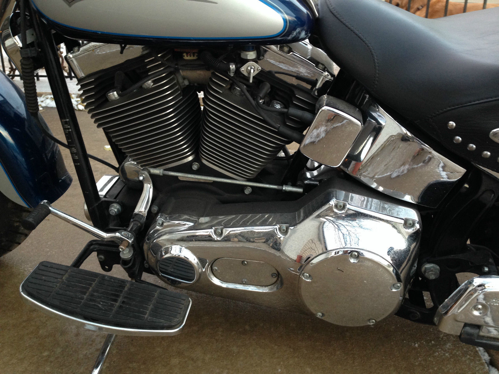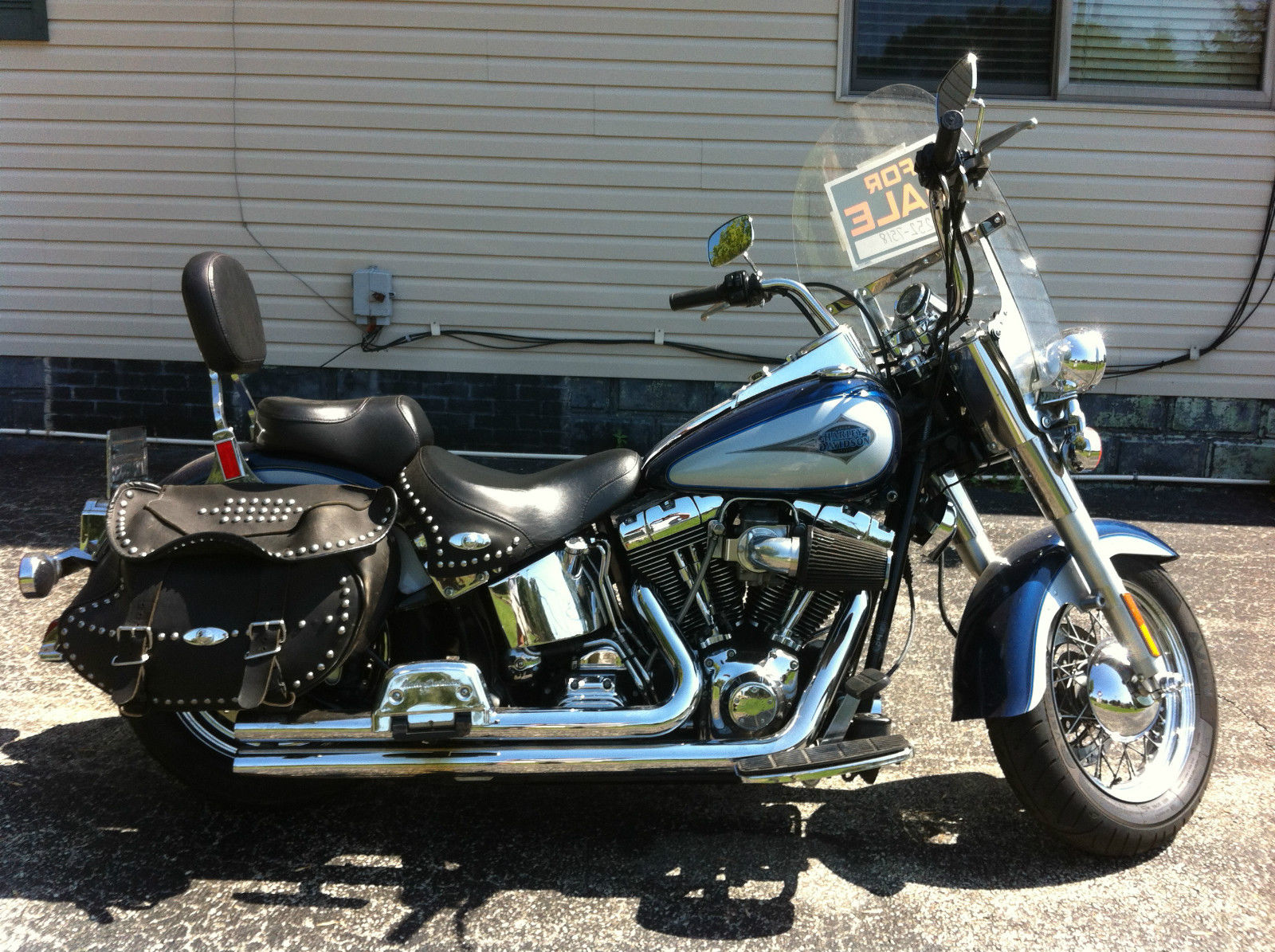 I am the second owner and i purchased bike at workmans harley in rock falls il. Ive had the stage 2 done including jetted carb. forcewinder air cleaner system and hooker header step tuned exhaust. the bike is fast and loud with a throughty kackle. A progressive by burly rear suspension kit is also installed allowing for a 2 and 3/4 height adjustment and currently sitting low. If your not familiar with this set up it is easily adjusted. The tires are avon venoms which are good tires that handle great in my opinion. The horn has be repositioned to under the neck for a more clean look between the jugs. ecause of that the choke bracket has been retrofitted to the right side which you can see in the picture. lso the windsheild is a quick release. I know im partial because she's my baby but this is a comfortable bike that runs like a dream. Only the very best profesionals have ever wrenched on her and its obvious!!!!As far as shipping its local pick up but i may be able to travel slightly to help if your not close by.