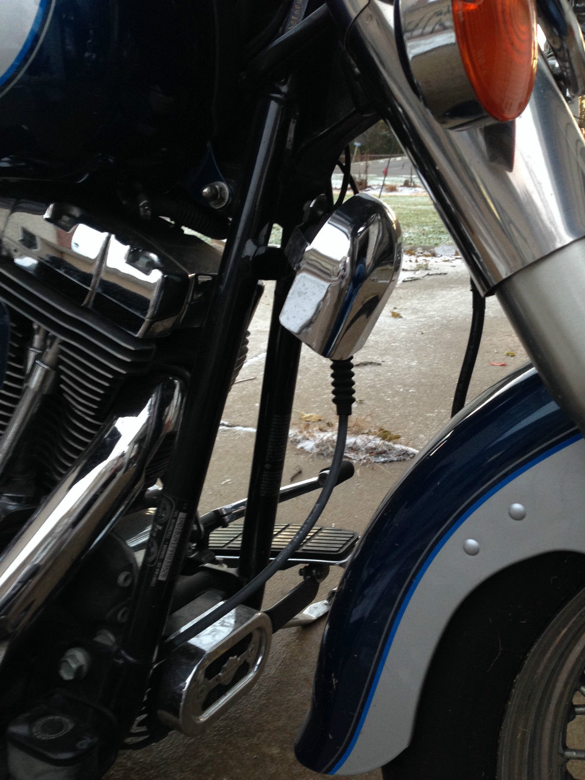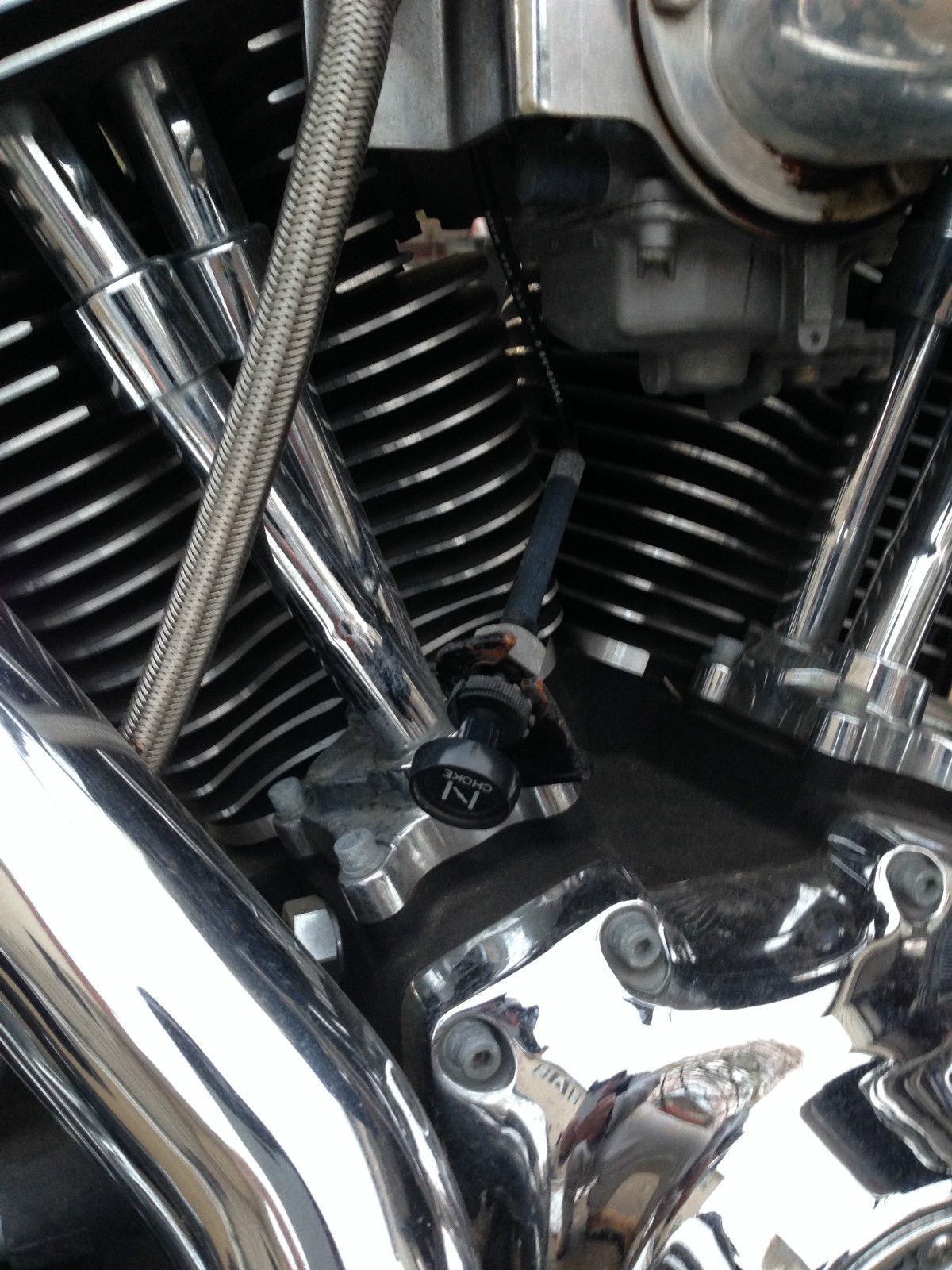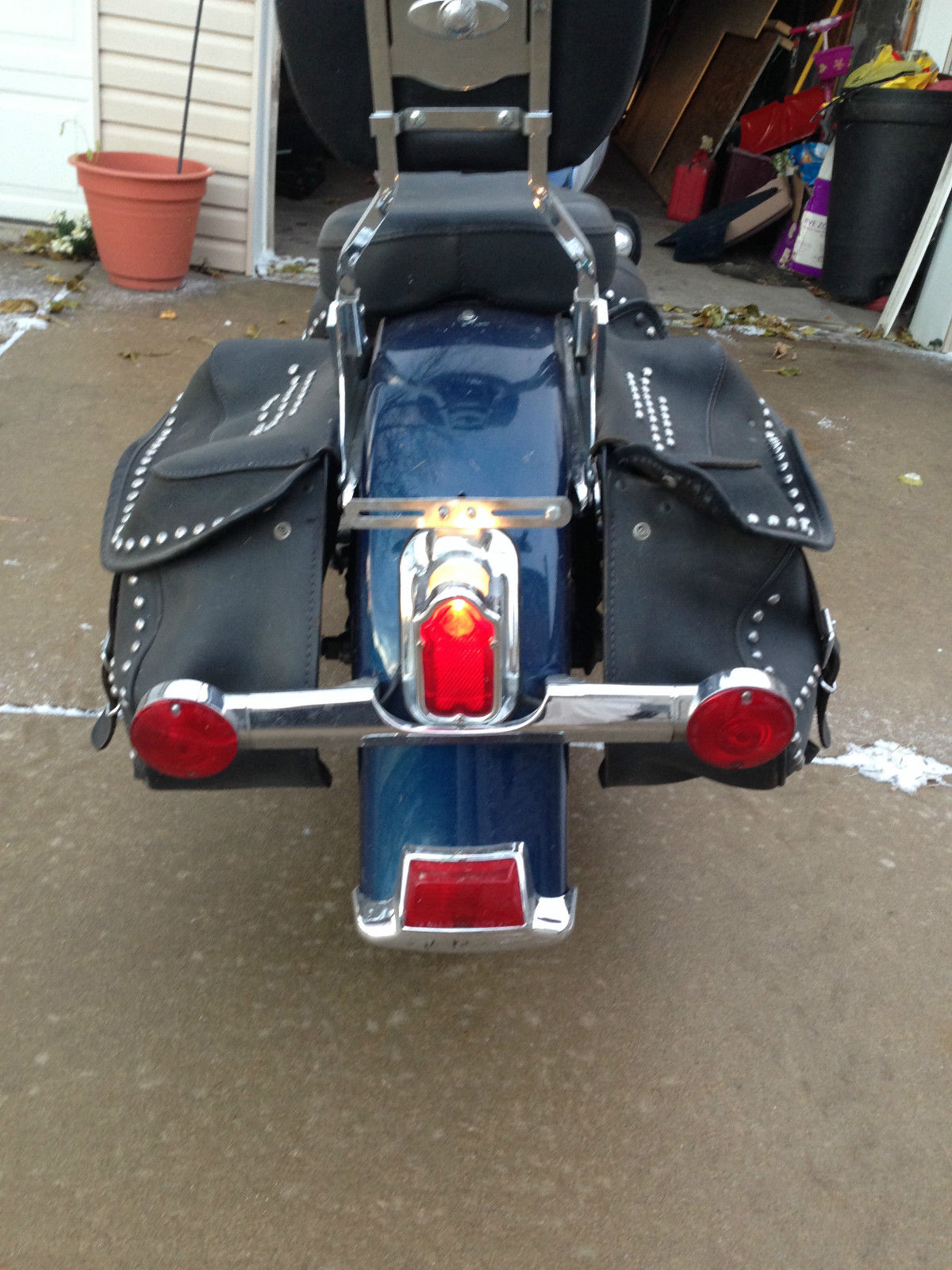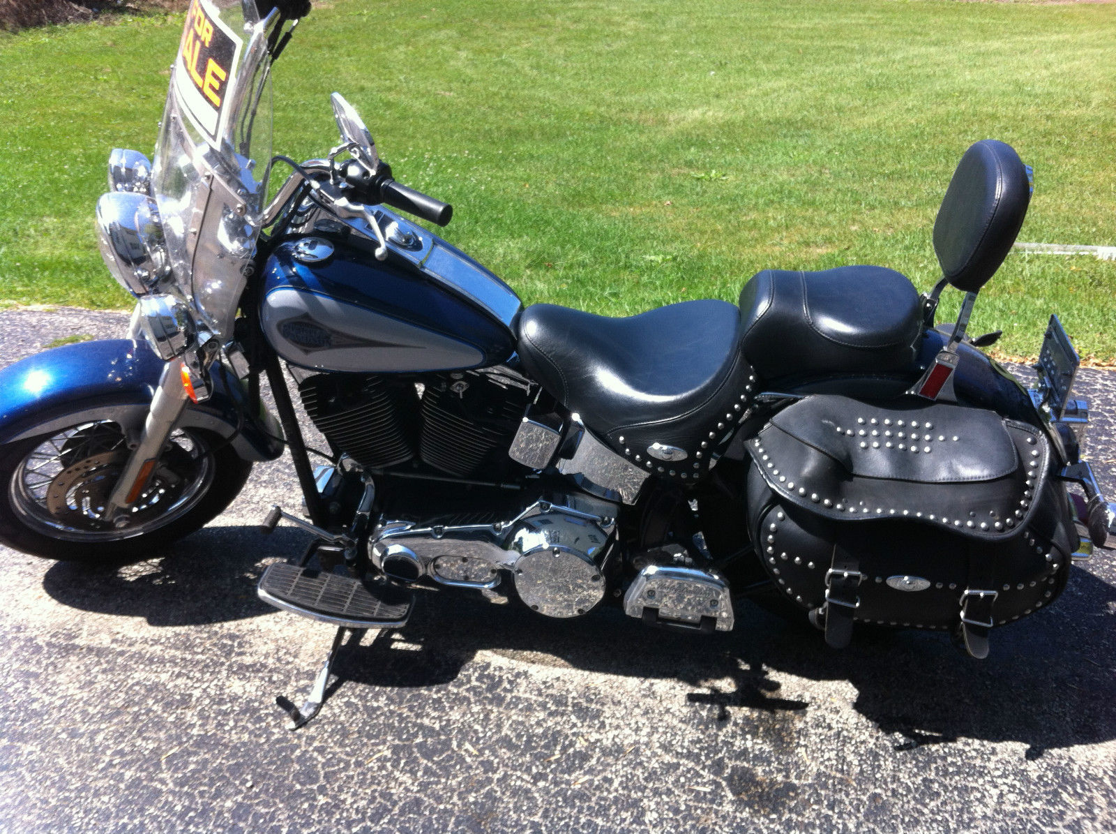 I am the second owner and i purchased bike at workmans harley in rock falls il. Ive had the stage 2 done including jetted carb. forcewinder air cleaner system and hooker header step tuned exhaust. the bike is fast and loud with a throughty kackle. A progressive by burly rear suspension kit is also installed allowing for a 2 and 3/4 height adjustment and currently sitting low. If your not familiar with this set up it is easily adjusted. The tires are avon venoms which are good tires that handle great in my opinion. The horn has be repositioned to under the neck for a more clean look between the jugs. ecause of that the choke bracket has been retrofitted to the right side which you can see in the picture. lso the windsheild is a quick release. I know im partial because she's my baby but this is a comfortable bike that runs like a dream. Only the very best profesionals have ever wrenched on her and its obvious!!!!As far as shipping its local pick up but i may be able to travel slightly to help if your not close by.