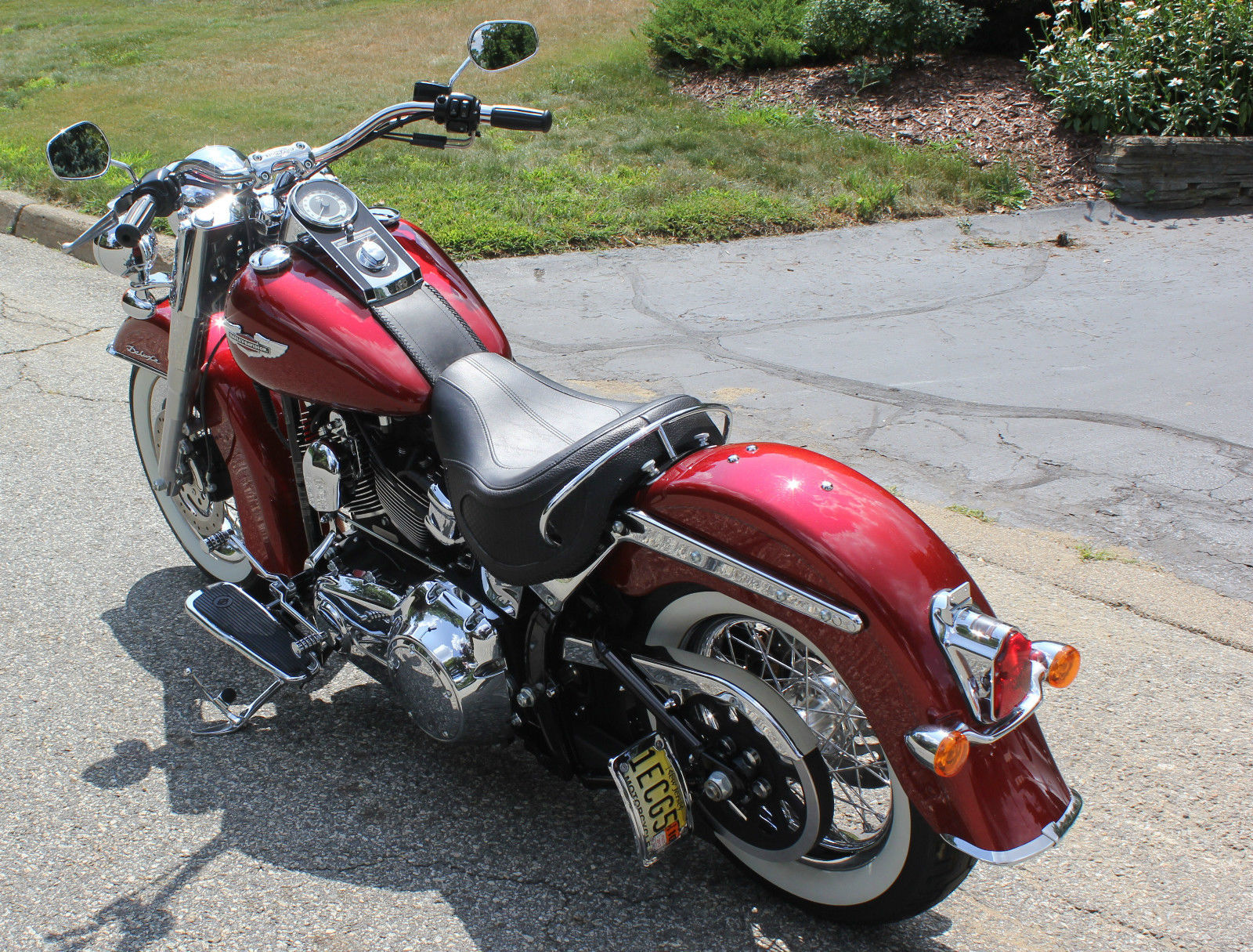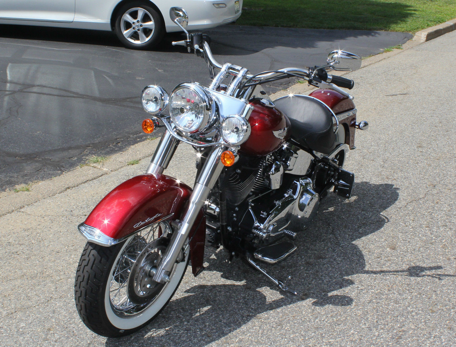 I PURCHASED THIS BIKE FROM KOSCO HARLEY DAVIDSON IN KINNELON. NJ ABOUT 4 YEARS AGO; I AM THE SECOND OWNER. IT HAD APPROX 1. 00 MILES ON IT WHEN I BOUGHT IT. I ADDED VANCE AND HINES PIPES. MOVED THE PLATE TO THE SIDE AND REPLACED THE ORIGINAL AIR FILTER AND COVER WITH SCREAMING EAGLE AIR FILTER AND HARLEY NOSTALGA COVER. THE BIKE IS SHOWN WITHOUT THE REAR SEAT. RACK AND BIKE PEGS BUT HAVE ALL OF THESE ITEMS. THE BIKE IS IN PERFECT CONDITION.