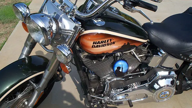 2004 Heritage Softail. Low miles. one owner and clean title. Beautiful Army limited edition paint skins by Harley Davidson. Includes quick disconnect bags. backrest and windshield. Lots of Chrome and upgrades. Vance and Hines long shots. Hi flow air cleaner kit fuel re-mapped. includes service manual. owners manual. bike cover and original paint skins!!!! any questions text 559-696-7504 or email