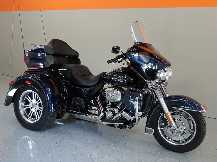 12 FLHTCUTG Thanks for checking out this perfect 2012 Harley Davidson FLHTCUTG Tri Glide Ultra Classic with 14k very cared for miles. It is Big Blue pearl and vivid black and the Blue is amazing in the sunlight. This Trike was just traded in for a RV so someones loss is your gain. It has the 103ci Vtwin and a 6 speed transmission. The bike runs beautiful and I will be putting a new tire on the front and the rears are excellent. It has the tour pack rack and rear grab bars too. This bike is free of any dings or scratches and looks as good as new. It has security and it also has LED lights that match the bike. It is a 1 owner bike and it won't last so stop in or call today before it sells. Trikes this nice priced this well sell quickly. Â Â