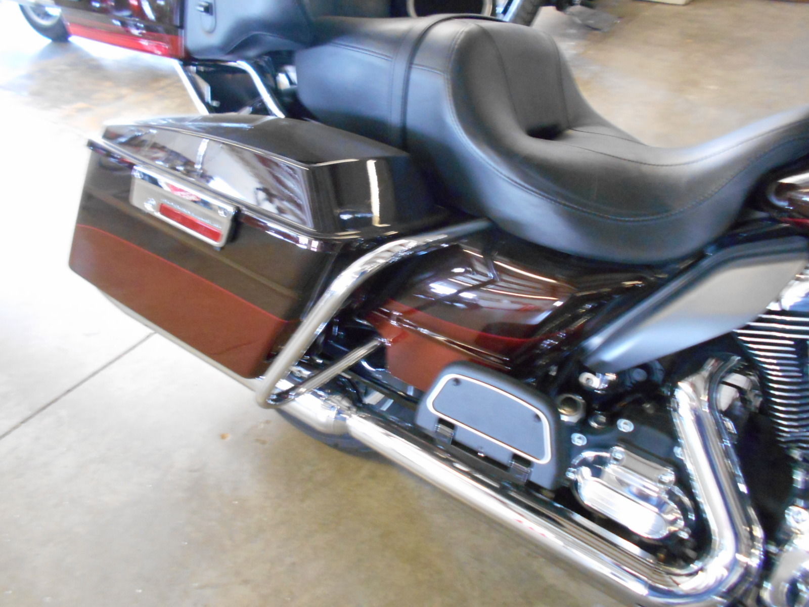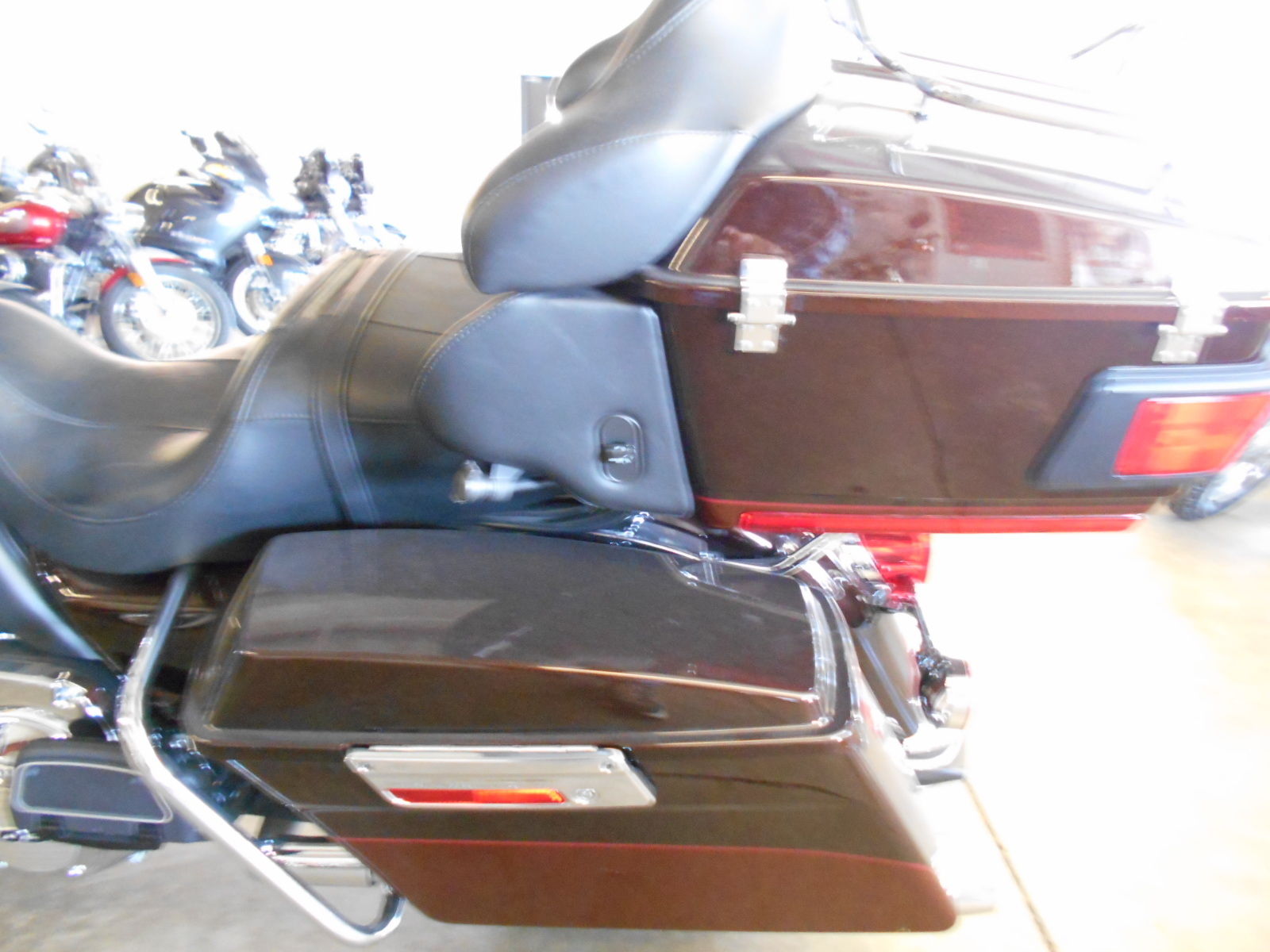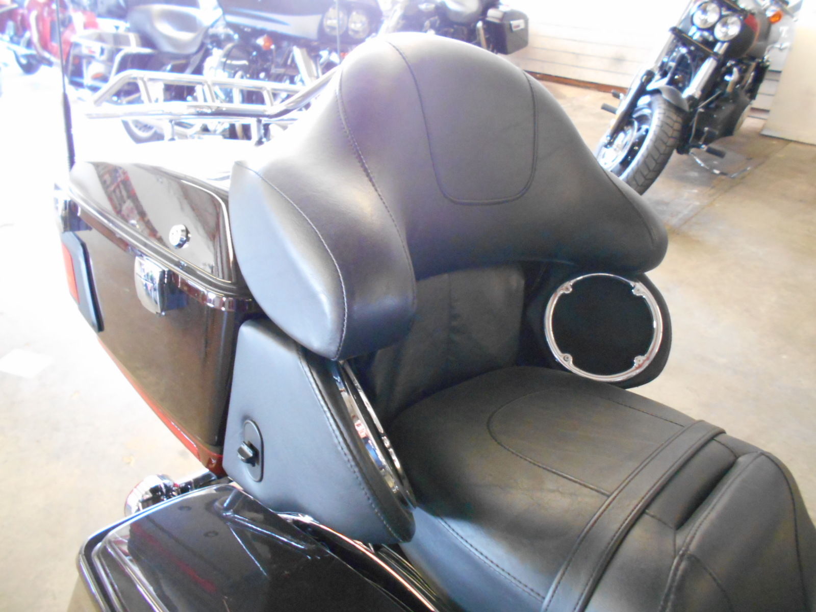 Seat: One-piece. two-up Electra Glide?® classic comfort stitch seat. sculpted for added comfort and easier straddling. Passenger backrest with wrap-around armrests.