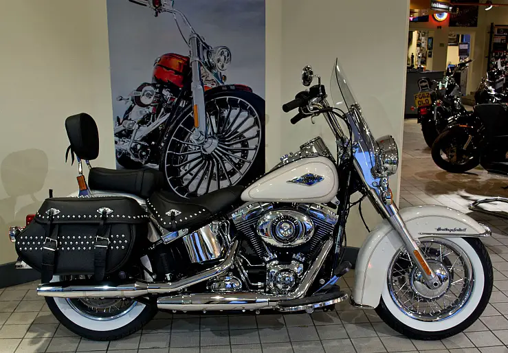 2014 Harley-Davidson FLSTC Softail Heritage Classic. earlescent White. Warranty. ABS. Alarm and Immobiliser. Backrest and Pad. Leather Saddlebags. Detachable Screen. Crash Bars. Passing Lamps. Whitewall Tyres. Bike/car/caravan or Van taken in part exchange. Call for same day valuation. . One of over 100 new & used Harley Davidson's. Open 7 Days a week