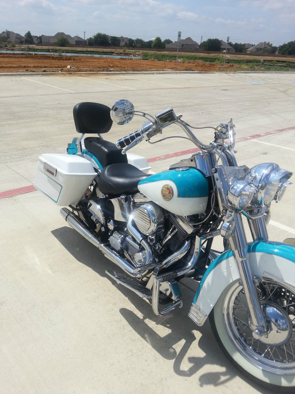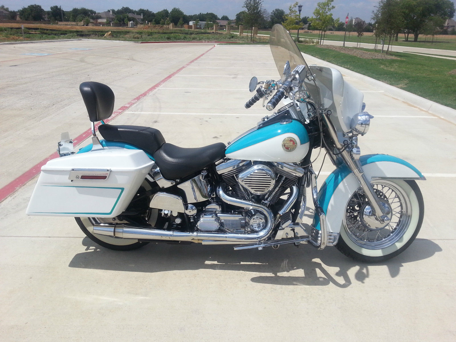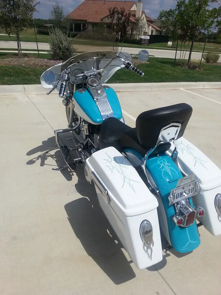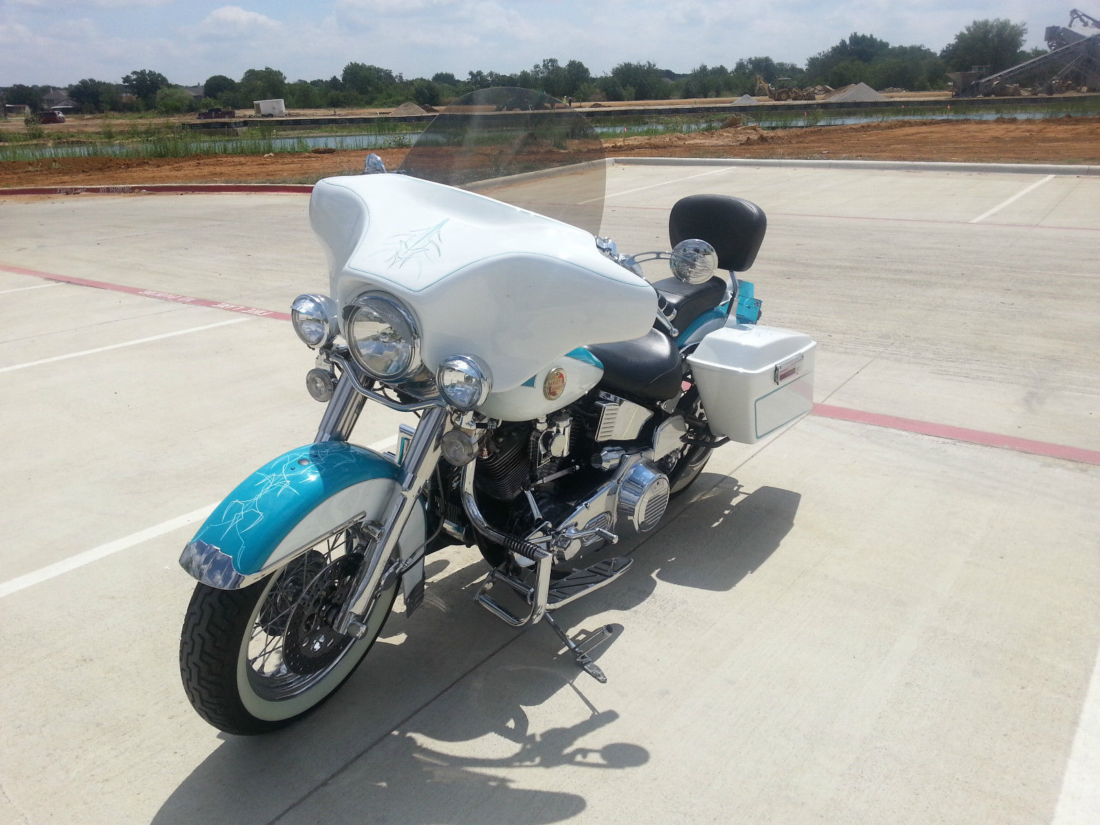 1988 Harley Davidson Softail FLSTC. 1340 cc with 6-Speed tranny. This is an awesome bike with quick release hard bags and fairing. Ride as touring for long trips or ride around town as a cool CUSTOM PAINTED with CUSTOM PIN-STRIPING. Brand new S&S Super "E" carburetor. Has a few bumps and grinds but NOTHING that is irregular or out of the ordinary. Adjure Headlight and Spot Lamps upgrade. If you buy a bike and have custom painted and pin-striped Fairing and Hard Bags installed with the sissy bar you are looking at 3500. That is already on this bike. Very showy bike grabs all the looks when you are with your pak on a ride!!! If you want more pics just ask I have plenty. Recent Rocker Box Gaskets installed correctly.
