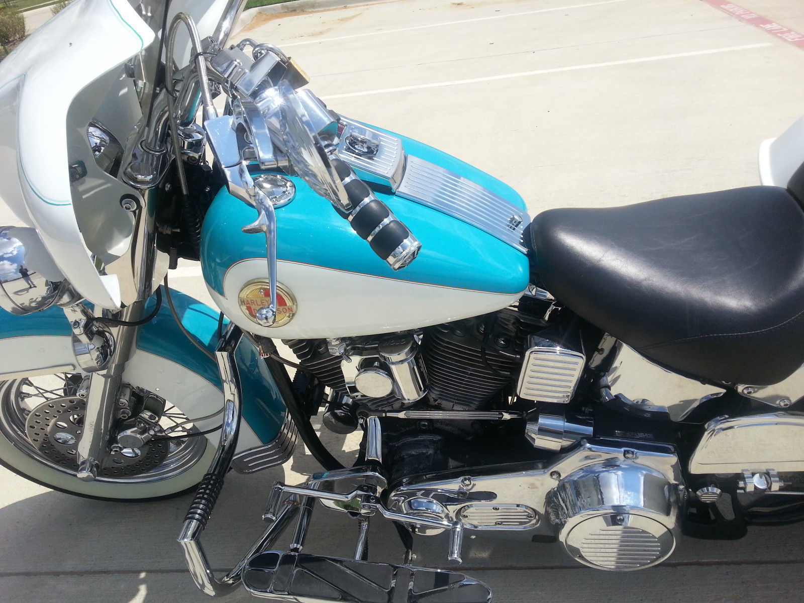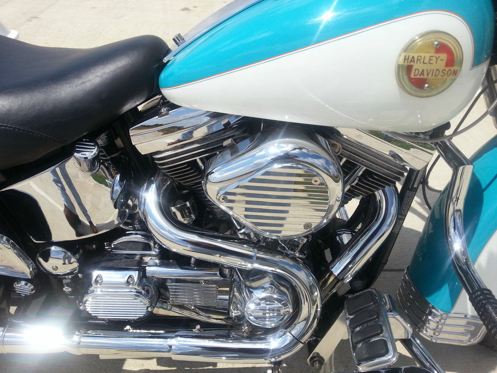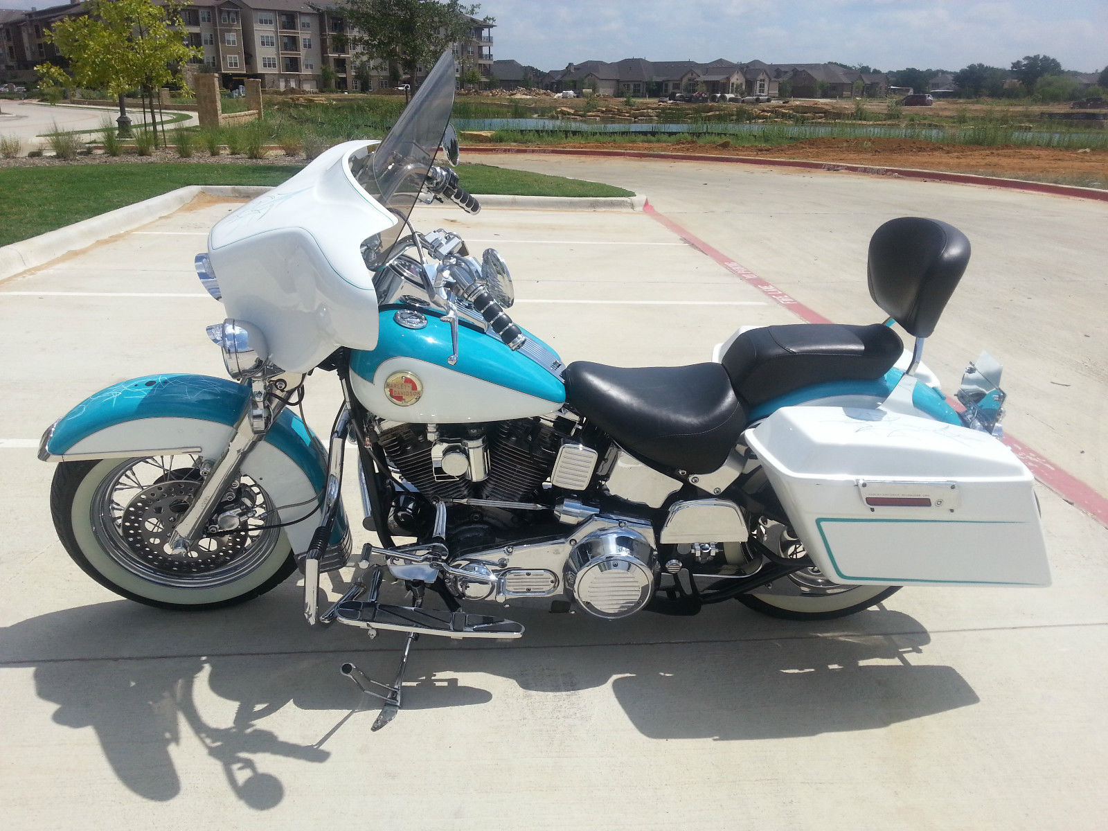 1988 Harley Davidson Softail FLSTC. 1340 cc with 6-Speed tranny. This is an awesome bike with quick release hard bags and fairing. Ride as touring for long trips or ride around town as a cool CUSTOM PAINTED with CUSTOM PIN-STRIPING. Brand new S&S Super "E" carburetor. Has a few bumps and grinds but NOTHING that is irregular or out of the ordinary. Adjure Headlight and Spot Lamps upgrade. If you buy a bike and have custom painted and pin-striped Fairing and Hard Bags installed with the sissy bar you are looking at 3500. That is already on this bike. Very showy bike grabs all the looks when you are with your pak on a ride!!! If you want more pics just ask I have plenty. Recent Rocker Box Gaskets installed correctly.