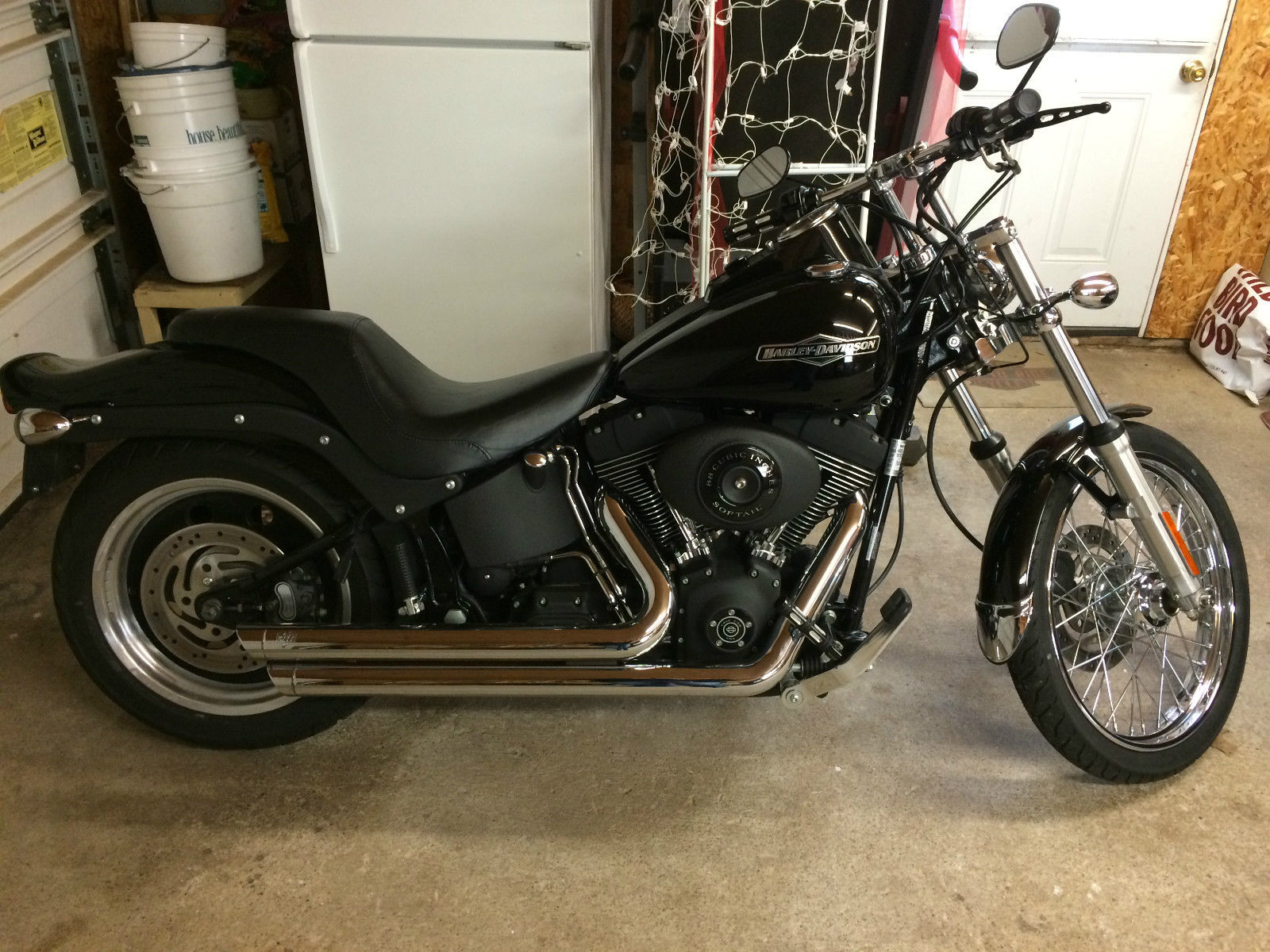 2006 Harley Night Train FXSTB. Vivid Black with chrome Vance and Hines Big Shot Staggered pipes. New tires and brakes front and back. All hand and foot controls have been replaced with the Harley Edge Cut collection. I am the second owner. I have put only 2100 miles on the bike since I purchased it from the Harley dealer here in WV. It is in great condition cosmetically and mechanically. Has normal wear for a bike with 22K miles. I smoked the turn signals for a more blacked-out look. Runs and sounds great. 200mm rear tire. I am asking well below NADA value of $10. 00. The bike also has a stage one carb kit with a high flow air filter. Buyer is responsible for shipping. The bike does not have a warranty.