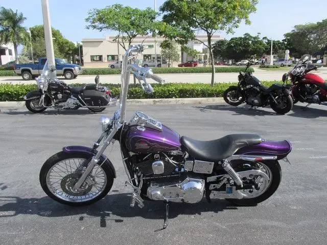 2001 Harley-Davidson Dyna FXDWG DYNA WIDE GLIDE CARBURATED PURPLE Cruiser Primary Color: PURPLE Accent Color: Black Stock Number:PM14009A Mileage:22. 24 Engine:1550cc Warranty:Limited Warranty Title:Clear VIN:1HD1GEV141Y320468 34 Full-Size Photos Vehicle Features & Options Ask the Seller a Question Email this to a Friend Start Credit Application Additional Photos click on a thumbnail to view full-size photos Motorcycle Description 2001 HARLEY-DAVIDSON FXDWG DYNA WIDE GLIDE A REAL HEAD TURNER. FOR THAT SPECIAL RIDER WHO WANTS TO BE SET APART. THE BIKE HAD A FULL STAGE 2 UPGRADE AT @18. 00 MILES. IT IS NOW A 95 CU IN ROCKET SHIP. BIKE IS TRULY IN AMAZING CONDITION FOR ITS AGE AND RELATIVELY LOW MILES. BE A PART OF SOMETHING SPECIAL AS THE OWNER OF THIS MOTORCYCLE. TO VIEW PICTURES PLUS MORE ABOUT THIS VEHICLE AND TO LEARN MORE ABOUT WHO WE ARE PLEASE VISIT OUR WEBSITE AT www. coralmotorsports. com This Bike is priced at wholesale value. Our motorcycles are advertised on many other worldwide websites so they often sell before the auction ends! You may call us anytime. Call Scott Wagner Now! (888) 569-7147 (U. S. A. - Canada - Caribbean) (24 Hours A Day - 7 Days A Week) or email at: swagner@coralmotorsports. com Contact Information Name: Scott Wagner Main Phone: (888) 569-7147 Email: swagner@coralmotorsports. com Dealership Information Coral Motorsports of Pompano Beach Main Phone:(888) 567-1322 Alt. Phone:(954) 363-3661 Business Hours: Weekdays:9:00 AM to 7:00 PM Weekends:9:00 AM to 6:00 PM Location: 5111 N Federal HwyPompano Beach. FL 33064 Visit Our Website View Our Full Inventory Ask the Seller a Question Email this to a Friend Start Credit Application View Our Full Inventory Learn More About Us Auction Views: