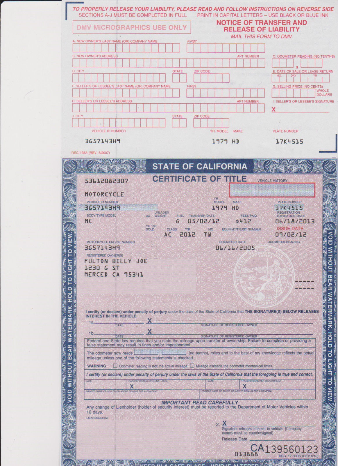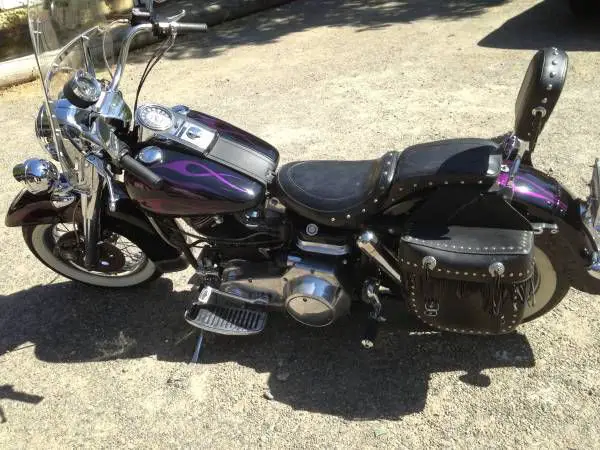 THIS IS A 1979 FLH HARLEY DAVIDSON SHOVEL HEAD 1200THIS BIKE IS IN PERFECT RUNNING CONDITION. SHIFTS SMOOTH. NO LEAKS. HAS NEW REBUILT MOTOR AND TRANSMISSION. HAS ORIGINAL 10477 MILES. HAS CLEAR TITLE IN HAND. HAS RECEIPTS AND ALL SERVICE RECORDS 3 OWNER BIKE. JUST PUT $3. 00 INTO BIKE WITH NEW PAINT JOB. EATHER SADDLEBAGS. ISSY BAR. IDEPLATES & PADS. LEAR WINDSHIELD. TC. PLEASE SEE PHOTO OF INVOICE AND TITLE SS CARBBACKREST WITH SISSY BARNEW SWING ARM BUSHINGFOG LAMPWINDSHIELDTACHOMETERRUNNING BOARDSCUSTOM PAINTCIG LIGHTEREMERGENCY FLASHERS3 OWNERSCLEAR TITLE PINK SLIP IN HANDPLEASE ONLY BUYERS WITH A NUMBER OF 5 OR HIGHER CAN BID. IF YOUR A SERIOUS BUYER YOU CAN CALL ME TO DISCUSS BIDDING. THANK YOU. 209-626-9607 OR 209-600-1349
