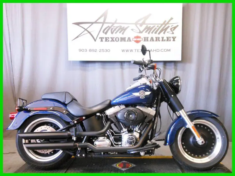 Listing by Auction123. com copyright Auction123. Inc. Texoma Harley-Davidson - 4000 North US Hwy 75 Sherman. TX 75090 - (214) 973-209912 Harley-Davidson® Softail® FLSTFB Softail Fat Boy LoPriced To Sell Fast!!! Click here for an XL view of the above Image   PrevNext  1 2 3 4 5 6 7 8 9 10 11 12 13 14 15 16 17 18 19 20 21 22 23 24 25 26 27 28 29 30 31 DescriptionBasic InformationType: CruiserMileage: 2392Title: ClearColor: Big Blue PearlAccent Color: Big Blue PearlCondition: UsedVIN: 1HD1JNV15CB020638Stock Number: TX020638Trim: FLSTFB Softail Fat Boy LoModel: Softail®Make: Harley-Davidson®Year: 2012DrivetrainHeel Toe ShifterNumber Of Speeds: 6Primary Drive (Rear Wheel): BeltTransmission: ManualPrimary Drive (Engine / Transmission): ChainSafetyHeadlightFuel Level WarningRearview MirrorsOther InformationBelt GuardDetachable Passenger SeatFork GuardsSide CoverWarrantyExisting Warranty: NoChassis & SuspensionAir Adjustable Rear SuspensionFrame: SteelFront Suspension Type: Telescopic ForkNumber Rear Shock Absorbers: 2Rear Suspension Material: SteelRear Suspension Type: Twin Sided Swing ArmComfortDigital InstrumentationTrip OdometerEngineBore (in): 3. 88Bore (mm): 98. 5Carburetion Type: Fuel InjectedCompression Ratio: 9. 6:1Cooling System: AirCylinders: 2Engine Brand Name: Twin Cam 103Engine Disp. to Weight (cc): 2. 26Engine Size (cc): 0Engine Size (ci): 103Engine Stroke: 4-StrokeFuel Capacity (gal): 5Fuel InjectorFuel Requirements: PremiumFuel Type: GasStarter: ElectricStroke (in): 4. 38Stroke (mm): 111. 3Torque (Ft Lbs): 98. 7Torque (Nm): 133. 8Torque RPM: 3000US Miles Per Gallon (Combined): 42Valve Configuration: OHV - PushrodValves: 4Valves Per Cylinder: 2BrakesFront Brake: Hydraulic DiscFront Brake Diameter (in): 11. 5Front Brake Diameter (mm): 292. 1Rear Brake: Hydraulic DiscRear Brake Diameter (in): 11. 5Rear Brake Diameter (mm): 292. 1SpecificationsDry Weight (kg): 317. 5Dry Weight (lbs): 700Front Tire (Full Spec): Dunlop 140/75 R17 67VFront Tire (Inches): 17Front Tire Aspect Ratio: 75Front Tire Speed Rating: 67VFront Tire Width: 140Fuel Capacity (liters): 18Ground Clearance (in): 4. 8Ground Clearance (mm): 121. 9Length (mm): 2395. 2Rear Tire (Full Spec): Dunlop 200/55 R17 78VRear Tire (Inches): 17Rear Tire Aspect Ratio: 55Rear Tire Speed Rating: 78VRear Tire Width: 200Seat Height (inches): 24Wet Weight (kg): 331. 7Wet Weight (lbs): 731. 3Wheelbase (in): 64. 5Wheelbase (mm): 1638. 3Wheels Composition: AluminumSpeedometerTachometer Contact " Texoma Harley-Davidson4000 North US Hwy 75Sherman. Texas 75090 Ask for: Dan or Stephen Primary Phone: (214) 973-2099Email: Email SellerSecure Online Credit Application Form Applying for a vehicle loan online is one of the quickest and easiest application methods. Our secure online application form is easy to complete. all you need are a few personal and employment details. Click here to get started. Email SellerEmail to FriendComplete and submit the form below to send a message to our dedicated sales team. * First Name:* Last Name:* Email:* Phone: Ext. Preferred Method:PhoneEmailMessage:Complete and submit the form below to send a link and your message to a friend. First Name:Last Name:*  Your email:* Friend's email:We won't use this information for promotional purposes or disclose it to a third party. Message:GeneralDirectionsTerms