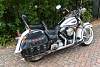 Harley Davidson FLSTS Heritage Springer 1340cc Evo Engine 1997I have always loved the Springer front end and have enjoyed riding these Classic 1340 Harley Davidson's for ever. When this one was offered I just went a little weak at the knees. I had to own her!! This Birch White with Blue Ribbon is with out a doubt the most striking colour combination the Company has ever created. Made in very limited number's. this Springer has to be viewed to be fully appreciatedThere is not a blemish of any kind on the paintwork. the chrome is perfect. she is running Fishtail pipes with a full Stage 1 and sounds just incredible. not noisy. just a very. very deep rumble. The idle speed is slow and almost lazy. something you only ever get with a carburettor model Harley. The leather bags and seat fringes are perfect. new white wall tyres. engine bar. passing lamps. chrome kidney tool box. rear backrest and riders backrest complete the Nostalgic look. I reserve the right to end the auction if the price is met! So you can contact me for more details.