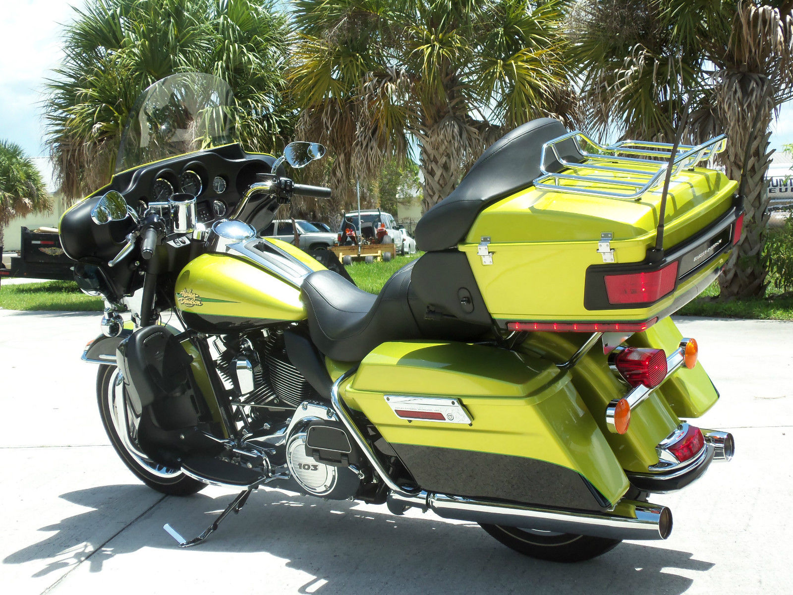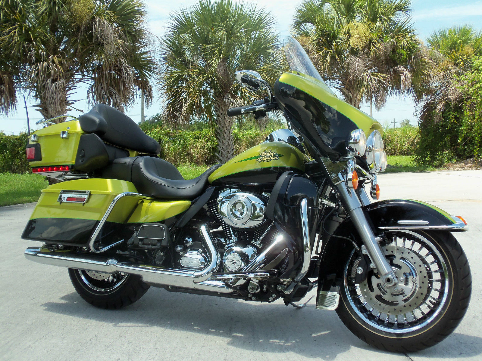 If you are in the market for a true TOURING bike that #1 is MINT and #2 LOW MILEAGE then you found the best one in the country for the money! This gorgeous 2011. 1 Owner Harley Davidson Ultra Classic Limited also comes with a special edition custom color of Apple Green/Vivid Black and it has an original 3. 83Â well maintained miles. This is by far one of the cleanest bikes I have ever purchased and this color is absolutely gorgeous and not boring like your typical Touring bike colors. It does come with some nice upgrades: