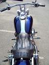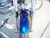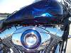 Custom paint by Cutting Edge Illusions that shifts in the sun from dark greens. purples. blues. electric blues and inside. it almost looks black. Custom air cleaner cover paint and high quality chrome skull horn cover with matching paint accents.  Stock wheels were professionally chromed by California Chrome and look much richer and deeper than OEM. No pitting or flaking on wheel. Swing arm was also professionally chromed by same company and at the brake caliper mount it is a smooth everywhere else with no orange peel effect. Brake linkage was professionally chromed by same company.  Wide tire kit on back. Front forks are genuine HD chrome. Screaming Eagle fork brace. chrome cable mounts and diamond braided chrome cables through out. except short brake line in rear.  low profile highlight with chrome mount. 8 inch fatty T-bars with internal wiring and a cover at the bass to hide where they come out at the bottom of the bars. all chrome on the handlebars. indicator lights have been wired into the chrome tank dash for red and green (yellow and blue and I will send my extra leds) The gauges were refaced in California and have blue LED back lights with a gear design etch into metal (one gauge has one dim light but everything shows fine at night.  Chrome engine covers. push rod covers. oil cooler with chrome cover. forward controls with professional chromed linkages. Custom seat from Danny Gray (solo seat Speed Cradle with a one of kind cover). Two up Sundowner seat included with a wide and a narrow backrest and rack mounted on detachable hardware with a lock.  The tank also includes the chrome flush mount gauge and fuel cap. The fender has been replace with the wide glide style fender. I also have the chain guard mount for one up riding when the passenger pegs are removed if you choose to remove them. I have installed the upgraded Harley alarm system with back up battery and will include the two key fobs. The fobs have an led light and will flash and chirp to alert you if someone tries to move your bike. There is so much chrome on this I can not remember it all but let's get to the meat and potatoes.
