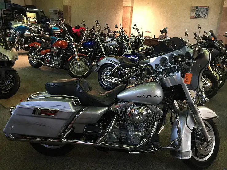 1999 HARLEY-DAVIDSON FLHT ELECTRA GLIDE SILVER 79340 MILES YOU CAN SEE THIS BIKE IN PERSON IN OUR DAYTONA BEACH. FLORIDA SHOWROOM 2 CYLINDER 5 SPEED 1450 CC LARRY W STEELE and CHRISTIE L STEELE @ DAYTONA WHOLESALE MOTORCYCLES SELLING WHOLESALE TO THE PUBLIC www. daytonawholesalemotorcycles. com/ DOING BUSINESS IN THE DAYTONA BEACH AREA FOR NEARLY 10 YEARS. CALL LARRY AT 386 562 3570 WITH YOUR QUESTIONS OR CONCERNS. USED MOTORCYCLES IN DAYTONA AND SURROUNDING AREAS FINANCING AVAILABLE TO QUALIFIED APPLICANTS DAYTONA WHOLESALE MOTORCYCLES IS A 100% POSITIVE FEEDBACK DEALER ON EBAY. WITH OVER 2200 FAVORABLE TRANSACTIONS!! DAYTONA WHOLESALE MOTOTCYCLES DOES NOT HAVE ANY HIDDEN DEALER FEES. FLORIDA RESIDENTS: SIMPLY ADD YOUR TAX. TAG. PLUS $389 TITLE & DOCUMENT FEE THEN RIDE AWAY!! ALL OTHER BUYERS: ONLY THE $389 TITLE & DOCUMENT FEE APPLIES. THE BUYER WILL INCUR A FEE FOR ANY EXPEDITED SHIPMENT OF DOCUMENTS AND / OR TITLE. DAYTONA WHOLESALE MOTORCYCLES CAN ASSIST YOU IN LOCATING A SHIPPING COMPANY TO FIT YOUR SHIPPING NEEDS TO ANY LOCATION AROUND THE WORLD. Recommended Shippers