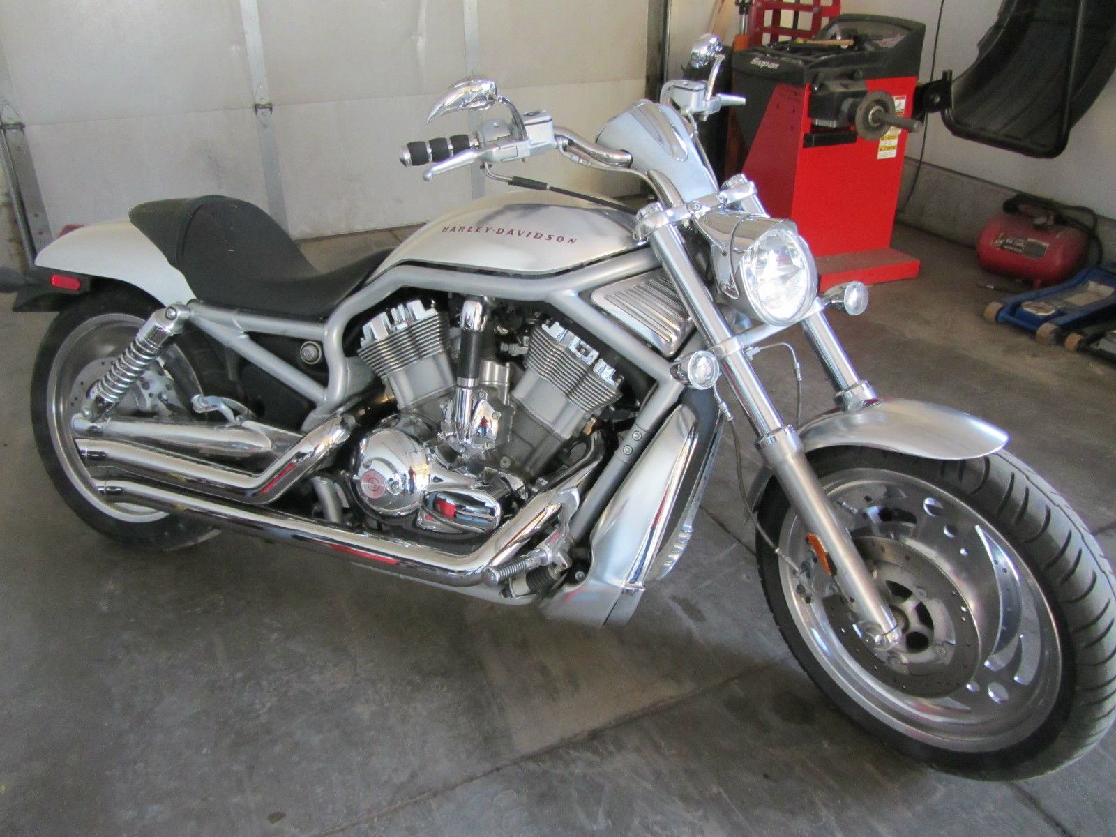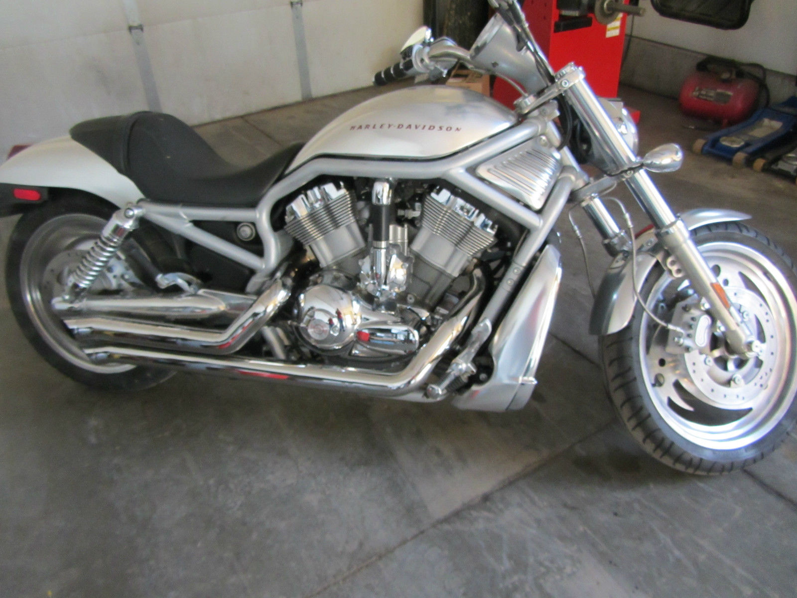 I have a 2002 Harley Davidson V Rod for sale. It has Jugg Hugger exhaust ($1200 upgrade) with a Fuel Commander. so its loud and fast. It also has a brand new speed sensor and clutch lever. Custom cut front wheel (very cool and makes it much nicer on highway). K&N air filter.  All chrome on bike is in great shape with only a few very minor scratches to aluminum tank and fenders. Tires are in ok condition with some minor pitting in rims. but nothing out of ordinary for a 2002.  Seat is in decent shape with a few minor cuts. Full service Harley Davidson Synthetic oil change completed last week.  This bike is located in Sturgis. SD home of the biggest biker rally in the world.  Stock this bike retails for around $7200.  I am motivated to sell so buy it now set low. Â