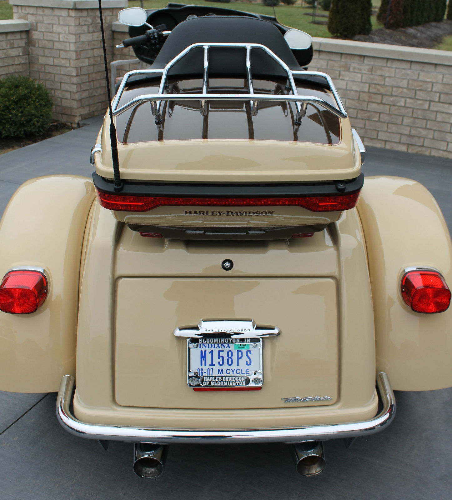 Beautiful trike. Original owner. The trike was purchased on 9/28/13 at H-D of Bloomington Indiana and now in Lafayette IN (home of Purdue University). Condition is exceptional except for mild water stains on the rims which will buff-out. No dings or mechanical issues (it had a small transmission leak repaired by H-D). Up to date on 1. 00 mile service. H-D options include bumper. luggage rack and foot pegs. Also added pig-tails for heated gear for both driver and passenger which makes cold weather driving a joy. Comes with the top of the line ("The Dream") 5 year extended service plan and optional tire and wheel coverage ($3. 00). Wire transfer or certified check will seal the deal. Happy to help coordinate shipping.