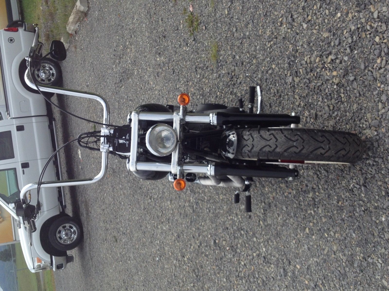 bike is in good condition. Has some small scratches on turn signals on bottom of back ones. Like new tires. Have stock bars u can put back on. But needs risers they are 1 1/4" bars. bike does have reconstructed title.
