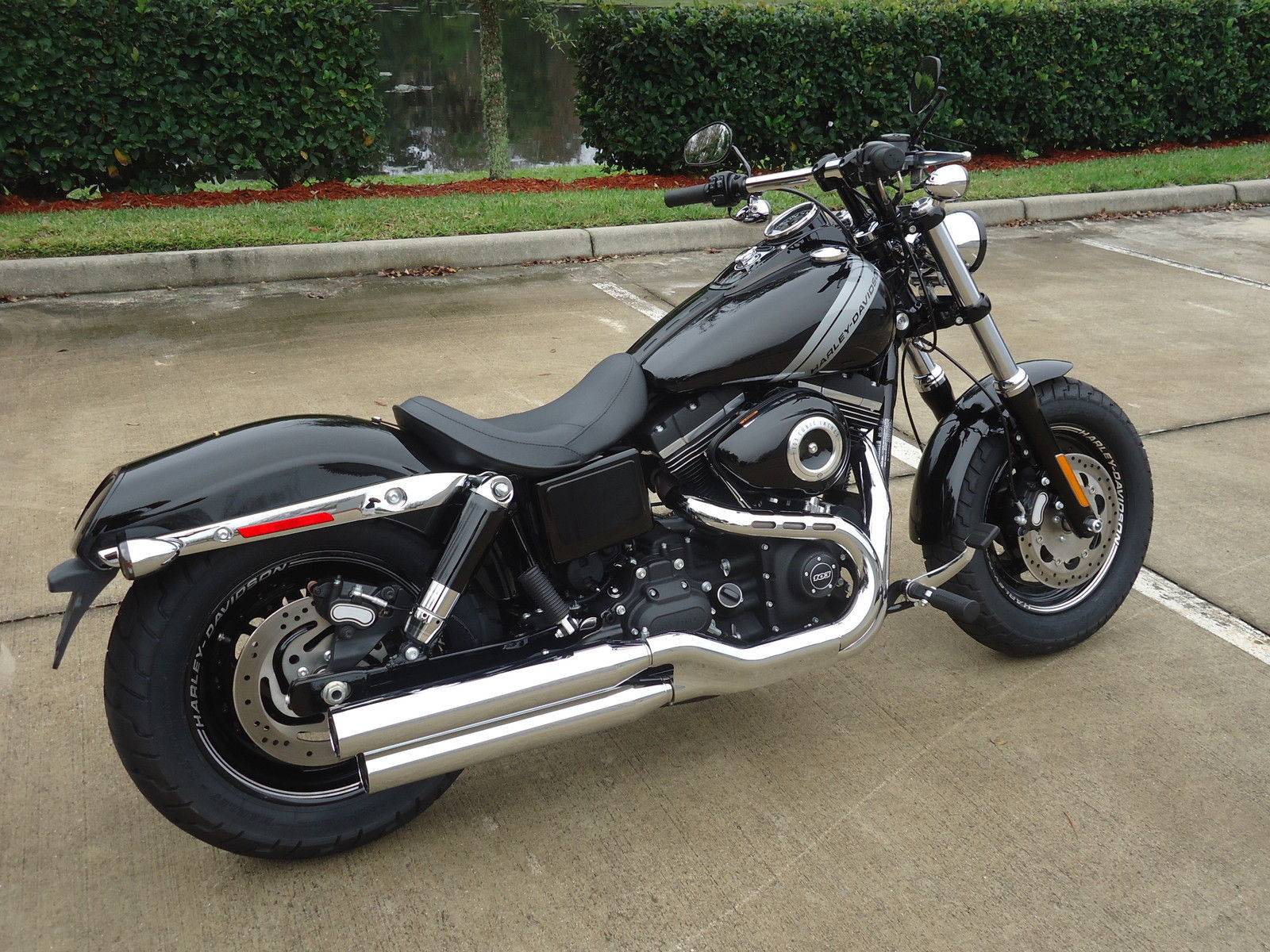 2015-01-02 172 Thanks for checking out this incredible Fatbob with only 300 miles. As you would expect the bike is absolutely flawless. The prior owner installed a Harley speedo-tach and a solo seat that looks really cool. The vivid black paint is perfect without as much as a bug mark. The Fatbob is the best handling bike in the Dyna family with it's 45mm fork tubes. ual disc brakes. and a fat 16'' front tire. The bike handles like it's on rails. The rubber mounted 103" twin cam motor provides plenty of power and the six speed tranny is silkey smooth. You can buy this awesome machine with total confidence as there is remaining factory warranty until 11/14/2016. Local buyers just add tax and tag and you can ride out. No additional doc or dealer fees. Financing available for qualified "Florida" buyers and local motorcycle trades will be considered. If you are out of the area I can assist with quality shipping to most US locations. I can provide contacts for overseas shipping but you'll have to get your own price quote. We have been selling quality vehicles for 25 years and have a 100% ebay rating and I gaurantee your complete satisfaction with this bike. Please review our customer feedback and see what our clients have to say. Title is on the way from Harley Financial and will be available in a week or so. This is a rare opportunity to purchase a bike that is basically new and save money in the process. Spring is around the corner and bikes be way more in a few weeks. This Dyna is perfect and will satisfy the most descrimminating buyer. If you have questions or would like to own this incredible machine call Steve Shay at (386)689-8900. Thanks and ride safe!!