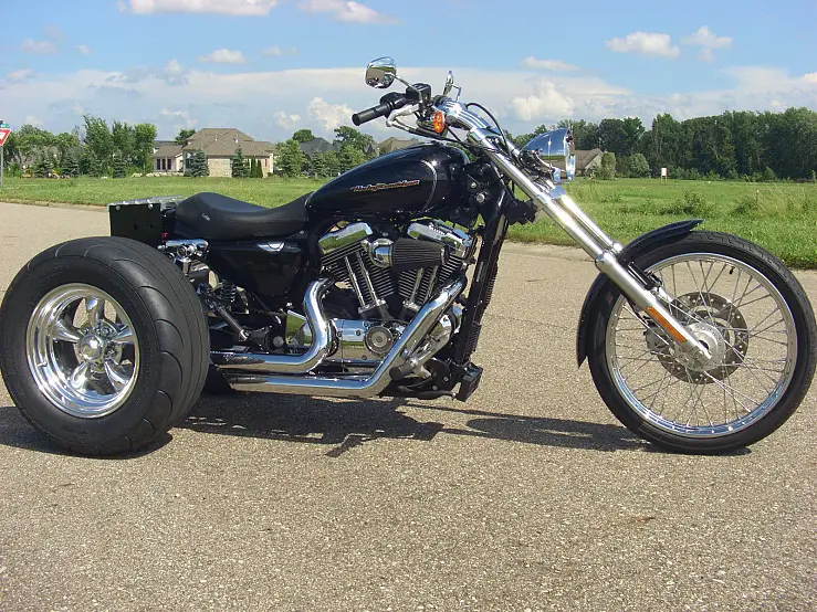 The trike is in great shape with very little wear. It runs great. This is a 1200 with fuel injection. vance and hines exhaust. forward controls. an 18 degree raked front end. and a frankenstein rear end. If you don't like attention then you won't like this one. Everywhere you go you will get noticed. This trike runs and drives great with no issues. There is a removable aluminum luggage rack that goes with it. The trike has 7200 miles on it but only 300 on the conversion. Thank You