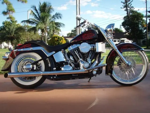 21 inch front? wheel. chrome front end. lowering kit. white wall new tires numbered Harley Paint. Supercharger. and the list goes on.