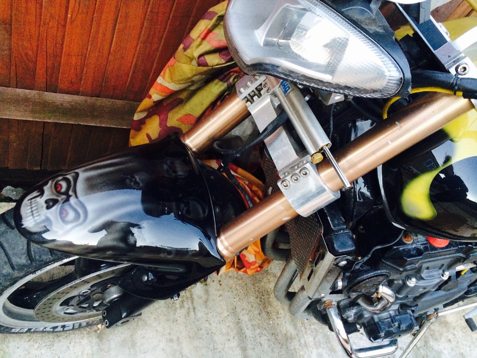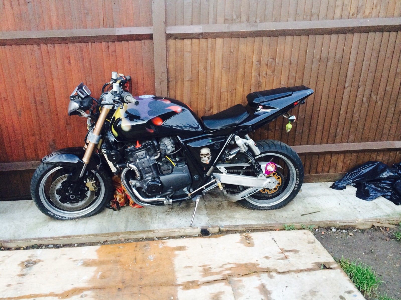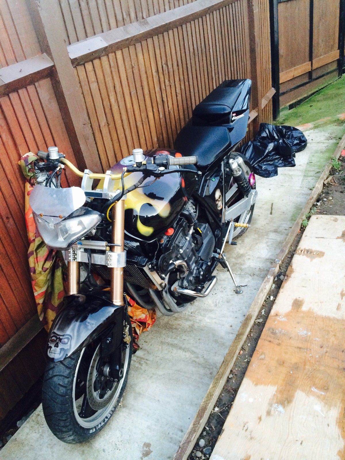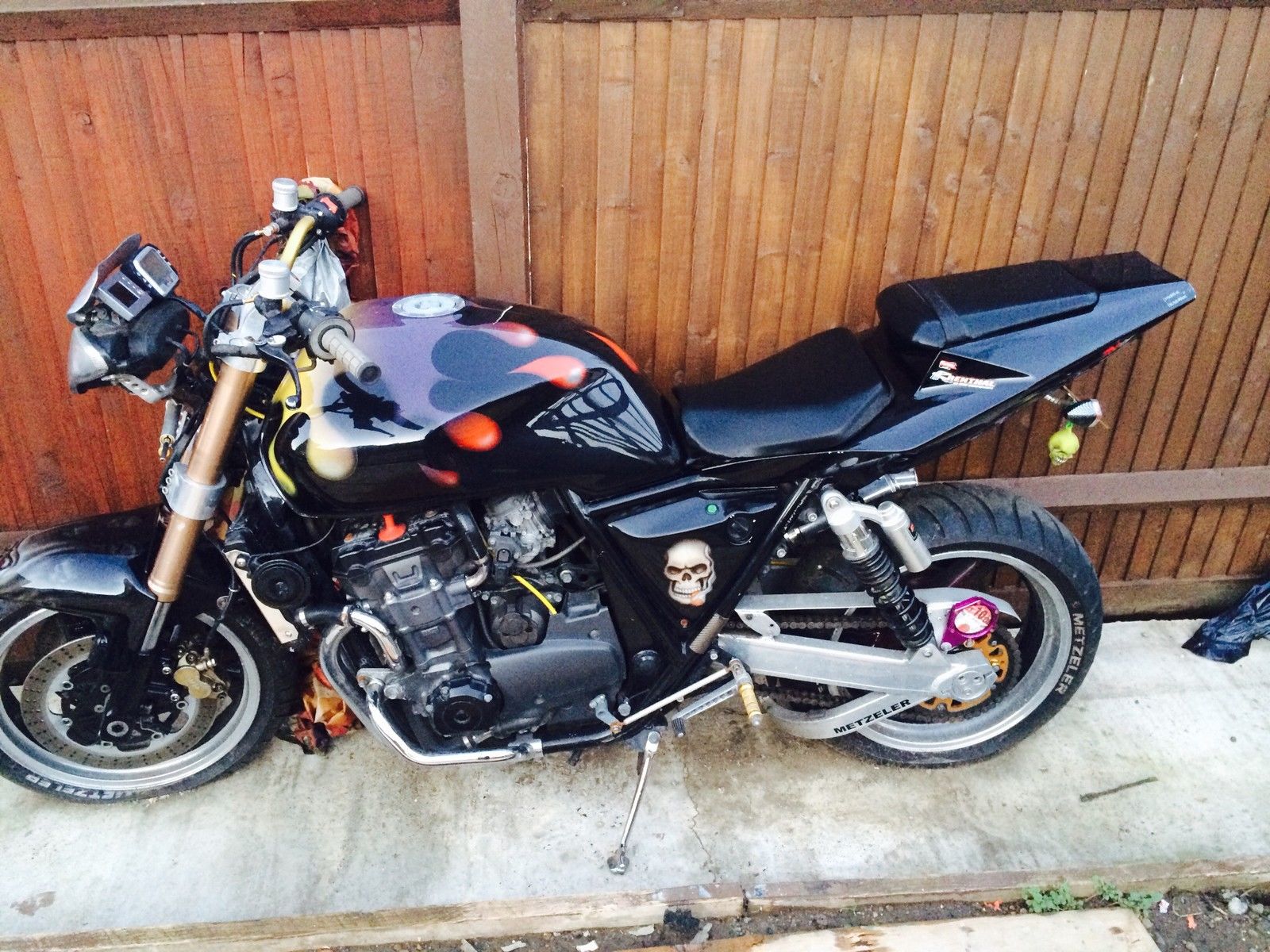 jmc swinging arm alloy bracked. usd upside down rebuilt kawasaki front end . custom paint . hel brake lines supersprocket (new) stuby exhuast . renthals . rearseats. r1 seat. idgital dash. rearveiw camera . ill health force to sell . first to see will bu,