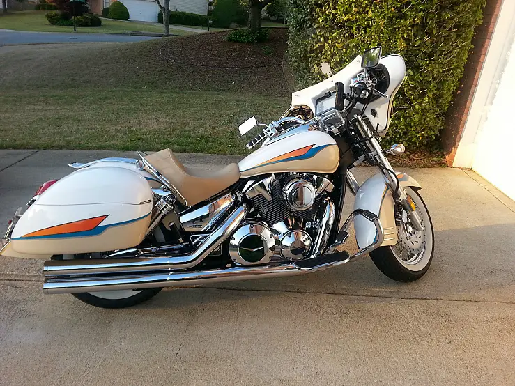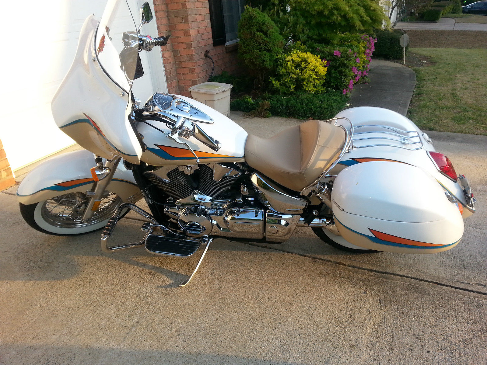 Bike has over $ 6. 00 worth of accessories and more chrome than you can image. Check out some custom parts on bikeHard Chrome pipesCustom paintChrome luggage rackChrome Seat RailDiamond Custom SeatTsukayu Fairing with 6 x9 marine speakersTsukayu Jumbo HardbagsKuryakyn hand grips. engine guards. and floor boardsChrome Spoon leverBrake Master Cylinder CoverDrive Shaft CoversSwingarm CoverShock Top Cover TrimRear Brake Caliper CoverRight Caliper CoverRear Master Cylinder CoverUpper Triple Tree CoverShift Peg Cover Clutch Perch Engine Case CoverPetcock cover Chrome HornChrome V-StyleMust see in person to fully appreciate. (770) 712-8364