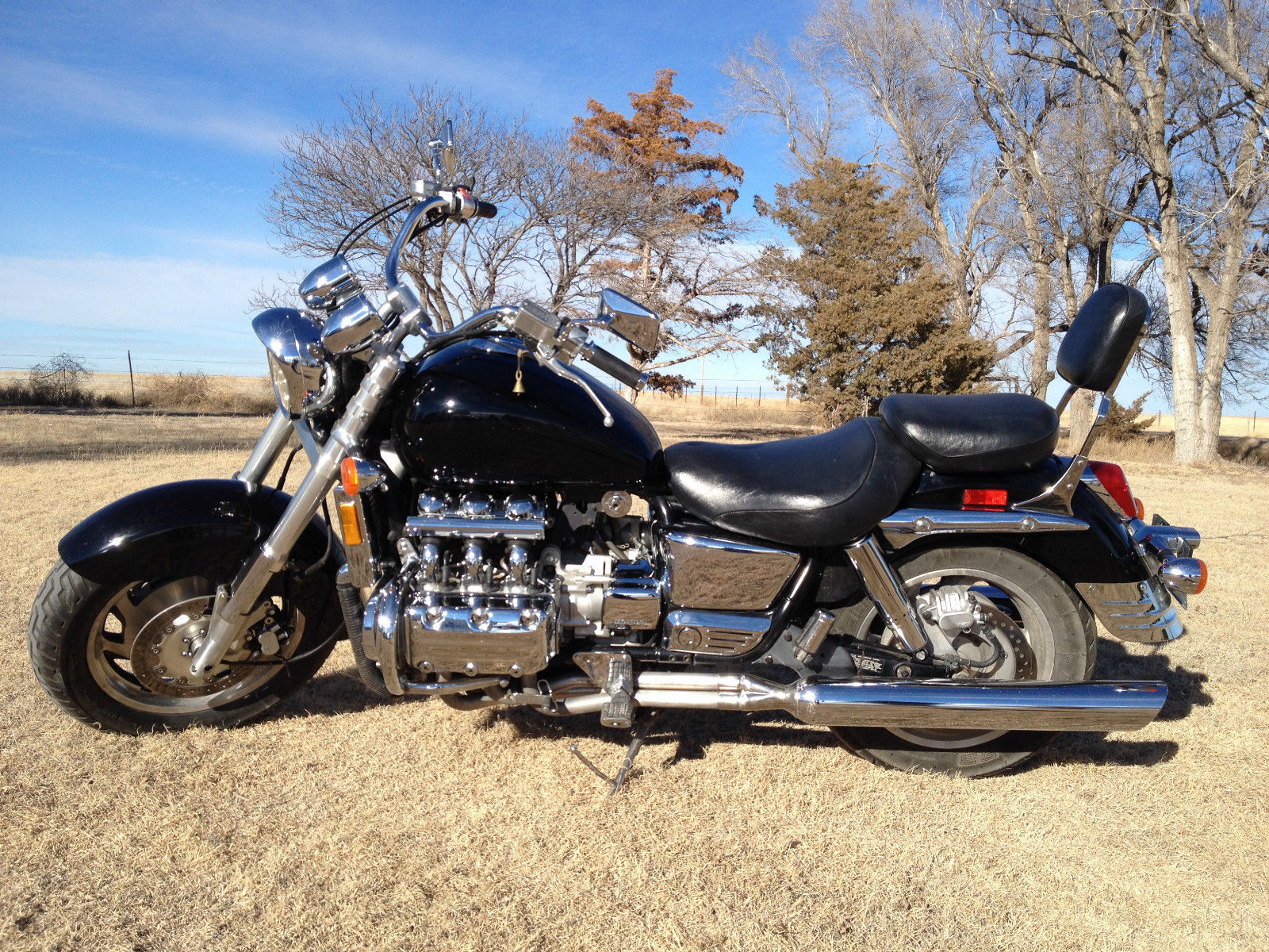 Up for auction is a 1997 Honda Valkyrie GL1500C. I have owned this bike for the last 9 years. and have gotten incredible enjoyment out of it every time i got the opportunity to ride it. Unfortunately. those opportunities are getting even more rare as the years go by. Now. with the move to a new house and a new city just around the corner. combined with some unexpected expenditures. It has gotten to a point that it no longer makes sense to own it. So it might be your lucky day if you are in the used motorcycle market. You would be hard pressed to ever find a more reliable bike. It fires immediately upon pressing 'START' button and never misses a beat after that. there is no sturrering or hiccups of any kind. Sits and purrs like a kitten when idling. and has smooth instant throttle response when you twist on it. (Throttle cable has been replaced and works better than it did when it was new). It steers and maneuvers very well considering its size. The weight is distributed nice and evenly so holding it upright is a breeze. This makes handling long trips a lot easier also. I've had it up to Sturgis twice and down by Phoenix once. Those were the longest trips; not a single problem on any of them. The huge horizontally opposed Flat Six Engine they stuff into these bikes is where the real story is. This thing makes incredible. whip-lash inducing power that will rip you right off the seat if you do not respect it. Fortunately. for me. this bike is relatively stock and hasnt had all the high performace upgrades that can make them even more wicked; otherwise i probably wouldnt be here to type this listing. With the exception of a Cobra exhaust (full system). having the timing advanced. and some fuel tuning. the bike hasnt had any modification that i am aware of. Just those few things made a heck of a power difference that a person would have to ride to appreciate. All these modification and mechanicing was done by reputable dealership service departments. Bike never missed a service appointment as long as i owned it and was always winterized if i knew i wasnt going to ride in a few months. Fork were just rebuilt this summer and had all seals replaced. Front tire is in excellent shape but the rear will need to be replaced soon. A couple years after i got it. the wind got ahold of her in my driveway and blew her over. not much damage was suffered but there are a few scratches and scrapes from it. Bike is also missing right side cover (as you can see in pictures). Comes with tall windshield (will get picture soon) Specs: CHASSISWet weight: 739 lbGVWR: 1133 lbWheelbase: 66. 5 in. Overall length: 100. 2 in. Rake/trail: 32 degrees / 6. 0 in. Seat height: 29. 1 in. Fuel capacity: 5. 3 gal (. 9 gal reserve)Fuel mileage: 30 to 42 mpg. 35. 9 mpg averageAverage range: 190 miles