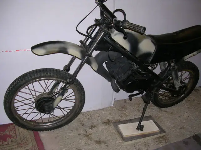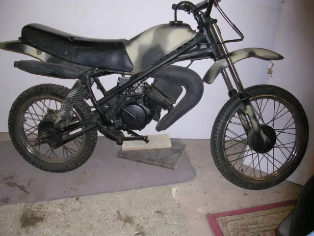 here we have my honda mt50. bought this last autum so i could go off roading with my daughter i wanted something different to the usual pit bike and a 2 stroke i have only used it around my garden as i no longer have anywhere to ride it . he bike has no lights or wiring what is. t needed. he frame and engine numbers are present and have not been messed with i dont have a v5 or reg number. he bike starts and runs fine. the engine has an uprated carb which i think is from a h100. since ive owned the bike ive fitted new levers. hrottle/oil pump cable. rake shoes. ir filter. gearbox output sprocket seal. a pair of longer bmw adjustable rear shocks and springs. nd reinstated the 2 stroke tank and pump as it was running on premix. he camo paint makes gives a one off look the front tyre has some cracking to the side wall. he paint on the tank also has some cracking see last picture this is. t bad and does. t detract from the look of the bike. he chrome on the rims have some rust on them see pictures. he seat cover has a couple of small cuts which have been covered with black tape the bikes in good condition but it is a 30 year old bike. iewing is recommended. collection only. ash on collection any questions just use ask seller button