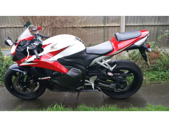 Loads of Offers through the E-Bay Messaging Service but it seems No-One has any Money. Worth Mentioning that a 2009 Model Sold the other day for ?3k that is a CAT C Write Off and still has some Damage. CHEAPEST IN THE COUNTRY. Another Bike I Bought off a Local Trader who is Retiring so here’s your Chance for a Bargain. He has given me a Few Contacts so I may have some more Bikes Very Soon. 2009 Honda CBR 600 RA9. Excellent Used Condition. ABS Model. Mileage at 29. 49. Totally Original apart from the Front No Boards(Genuine Honda). R&G Paddock Stand Bobbins. HRC Tank Pad. H/Light Protectors and the Carbon Exhaust Heat Shield. MOT Until 27th July 2015. Had a Restrictor Kit fitted. Now Removed. so Cheaper Insurance for the Younger Riders. V5c. Smartwater. 2 HISS Keys. Owners Manual. Service Book(8 Stamps). Original Toolkit and Restrictor Kit Certificate. HPI Clear. No Finance. No Accidents. Not Stolen Recovered etc etc. The Only Points Worth Mentioning are a Scuff on the L/H Mirror(See Photo). A fewPaint Chips on the Left Hand Fairing(See Photo) and some Paint Chips to the Front Fairing and Lowers. Both Tyres. Matching Pirelli Supercorsa's. are in Good Condition as are the Brake Pads and Chain & Sprockets(New) so No Money needs Spending on the Bike apart from Tax. Previous Owner said he Bought the Tyres S/H on E-Bay as he didn't want to Spend ?300 on Tyres as he was Selling the Bike. The R/H Side has a Cold Tear from 1 Practice Session(See Photo's) but still Loads of Tread left on them. The Bike has Full Service History and been well looked after. Last Serviced at 28. 27 in 2014. These Bikes Usually Fetch around ?5500 on a 09 Plate but this one has Slightly Higher Motorway Mileage. Cheapest I could find anywhere is ?4900. There is a Cat C Write Off that the Owner wants ?4500 for so Worth Every Penny of my Buy Now Price. I have been Very Honest in my Description. Maybe a bit too Honest but I Describe things how I see them. Having said that My Good Condition might be someone’s Poor Condition and Visa Versa so I am More than Happy to take any Requested Photo’s of any part of the Bike from any Angle/Distance if Viewing is a Problem. Viewing More than Welcome so you can see it in the Flesh and Judge for yourself what its Worth. This is a BUY NOW or BEST OFFER Listing so be Quick if you want a Bargain. Please only make an Offer if you have the Cash readily Available and can Collect ASAP. ?50 Deposit at Close of Listing and the Remainder by Bank Transfer or Cash on Collection within 3 Days. Viewing More than Welcome. E-Mail me or Text 0759 133531. I MAY TAKE A PART EX BUT WITHIN E-BAY RULES. i. e YOU BUY MY BIKE AND I'LL BUY YOURS.
