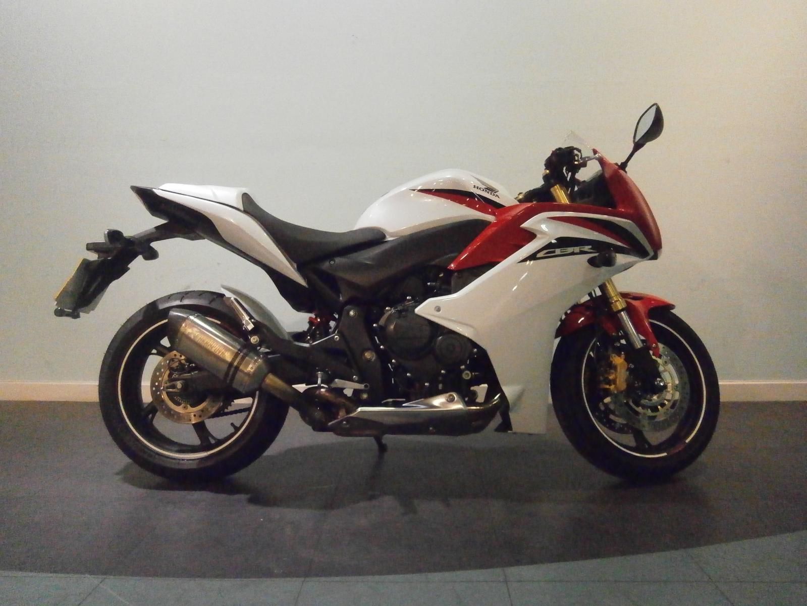 A very fine example of the great middleweight CBR600F. With the tried and trusted CBR600RR motor wedged inside. re-tuned for more bottom and mid-range rasp. also being comfortable. easy to ride and good looking you'd be mad to pass this by. As you would expect from such a low mileage machine it is very good condition. Fitted with a colour matched hugger. seat cowl and Akrapovic exhaust. Call today to get a part exchange price or a finance quote. Honda extended guarantees also available.