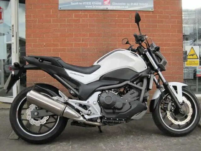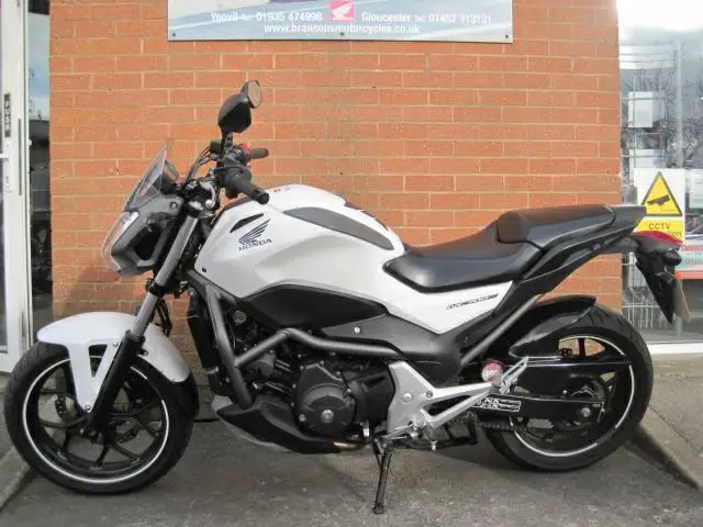 Honda NC700SA-CSold and serviced by ourselves. this Honda NC700S has been fitted with a centre stand. wheel rim tapes. Oxford heated grips. fender extender and a GI Pro gear indicator. This bike is in lovely condition bar a small dent on the exhaust where something has caught it. We have dealerships in Yeovil and Gloucester. please go to our website at www. bransonsmotorcycles. co. uk for contact details. if you are interested in this bike. Nationwide delivery available. Available from Bransons Motorcycles of Gloucester on 01452 313131 / Sales. gloucester@bransonsmotorcycles. co. uk