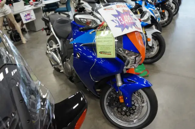 Motorsportseller999Call Josh at 1-877-730-92672012 Honda VFR 1200 Description: IF YOU CALL OR VISIT OUR STORE PLEASE ASK FOR JOSH OR EBAY!!! This is a brand new 2012 VFR 1200. Marked down over $5000 Don't miss out on this deal! This bike can be delivered to most cities in the US and Canada starting at $499. Please Contact Josh at 1-877-730-9267 for a quote Meet the Future. Revolutionary? Radical? Honda’s incredible VFR1200F is all that. and much more. The list of innovative technology is endless. and there’s even more this year since the 2012 VFR1200F showcases some significant upgrades. improvements and innovations. The super-compact Unicam® design 1. 37 cc V4 engine is fueled by Honda’s Throttle By Wire system. and this year offers more torque and more range. There’s even a new Traction Control system. Together with Honda’s Combined Braking with ABS. this makes the VFR one of the most feature packed bikes out there. MSRP$15. 99. 00DIMENSIONSWHEELBASE60. 8 in. SEAT HEIGHT31. 9 in. ENGINEENGINE76° V-4. SOHC. 4 valves per cylinderDISPLACEMENT1. 37 ccBORE X STROKE81 x 60 mmCOMPRESSION RATIO12:1CARBURETIONPGM-FI with automatic enrichment circuit. 44 mm throttle bodies & 12-hole injectorsFUEL TANK CAPACITY5 gal. IGNITIONDigital transistorized with electronic advanceCOOLINGLiquidDRIVETRAINTRANSMISSION6-speedFINAL DRIVEShaftBRAKES/WHEELS/TIRESBRAKESFront: Dual full-floating 320 mm discs with CBS 6-piston calipers with ABSRear: Single 276 mm disc with CBS 2-piston caliper with ABSTIRESFront: 120/70 ZR17 radialRear: 190/55 ZR17 radialOPERATIONALSUSPENSIONFront: 43 mm cartridge fork with spring preload adjustability; 4. 7 in. travelRear: Pro Arm single-side swingarm with Pro-Link® single gas-charged shock with remote spring preload adjustability & rebound damping adjustability; 5. 1 in. travelRAKE25. 5°TRAIL4 in. (101 mm)More information about MOTORSPORTSELLER999 and our accessories. Click here--> To Visit Our Ebay Store Click Here ----> Terms Of Sale: If you are the WINNER of this auction you must contact us with your information within 48 hours. There will be a $295 set up fee and a $75 Documentation fee that will be added to the final price of this vehicle *( see below for delivery options) Motorsportseller999 will be responsible for set-up preparation and delivery obligations on new vehicles as prescribed by the manufacturer. This item is currently available on our show floor. Please call for availability prior to purchasing online. Used vehicles are sold as is with no warranty. unless stated in the listing. For credit card purchases over $1000 and finance options please call 1-877-730-9267 for authorization. Motorsportseller999 does NOT collect sales tax or license on units that we deliver to an out of state residence. If the unit is picked up at the store you will pay Minnesota sales tax (6. 5%). Unless it is a licensed vehicle. (motorcycle. scooter. or trailer) if you are a Minnesota resident we will collect tax and license. (WI is different as we can license in that state. Please call with questions) Please do NOT bid if you need permission or if you have any other questions on the item. If the above terms are not met Motorsportseller999 reserves the right to relist the item. For more information about this vehicle and its options. Please call Josh at 1-877-730-9267 *VERY IMPORTANT PLEASE READ* Additional forms of payments include. Direct deposit. Bank to Bank Wire Transfers Credit Cards (Visa. astercard. iscover) Call for authorization for purchases over $1000. 00 Finance options available. This vehicle may also be available for purchase on our show floor. Auction may be ended at any time for any reason by Motorsportseller999. Vehicle Pickup Options: Please call Josh @ 1-877-730-9267 for pick up or delivery. About Us: We are the largest Motorsports dealer in the upper Midwest. and have been in business for 40 years. with Over 1000 New and Used units in stock. We offer most major brands. Please see our ABOUT ME page for more details. Our State of the art 60. 00 Square foot facility is home to over one million dollars of Parts and Accessories. We have been Sellin' Fun Since 71! We stand behind our product. Any questions please e-mail. Minnesota sales tax will apply to MN residents. Bid with confidence as we have shown that we are here to provide a great service.