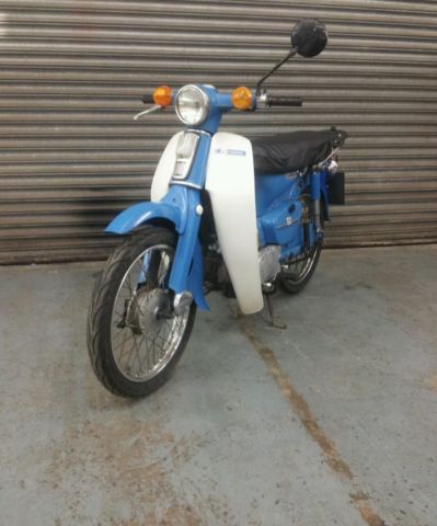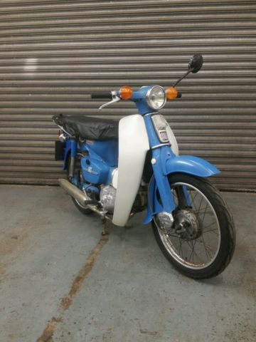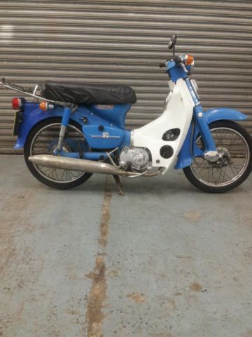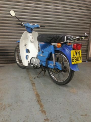 Here I have a lovely original honda c90. x reg. it was stood up in a friends dry garage for some time. it was originally took off the road due to a fuel leak. my friend had bought a brand new complete carb for it but never got round to fitting it. a few years on I have fitted the new carb. fitted a new battery. flushed the fuel tank and put fresh fuel in. cleaned the points and set up timing and she fired up 3rd kick. it runs and idles as it did when new. the ever reliable c90 engine sounds sweet as a nut. I then drained the old oil when warm and put fresh in. This is pretty much all I have time to do. with a few hours TLC with a bit of polish/paint this would make a excellent little clunk. a very easy light restoration. Every single bulb works and I have ridden it around my work car park and it rides. changes gear and stops exactly as it should. It needs a couple small jobs doing like switches tightening up/attending to. split pins fitting here and there and a general check over and I'm sure it would sail through a mot. I just don't have the time. Needs a good home to someone who fancies a nice easy project. It has the original Honda key with it and the log hook is present. Any questions please ask200 deposit to be paid within 2 days of auction end. can deliver to localish area for fuel costs covered. Photos will be added on tomorrow bike is sold as seen in the pictures. viewing is welcome so you are fully aware of exactly what you are buying.