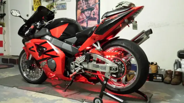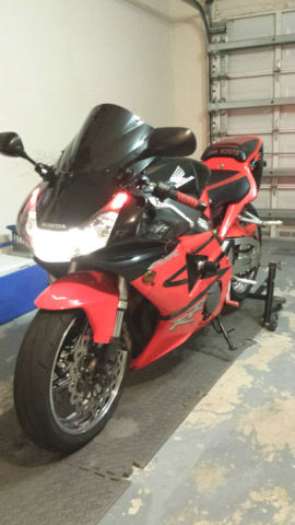 Up for grabs is a cherised CBR 2003. 954. In excellent condition. Too many extra to list but here is a few. 1. Brand new Dunlop Q3 tires. Size 200 on the rear. 2. Chrome wheels. 3. Custom red LEDs. 4. Two Brothers juice box (power command). and custom instrument cluster. This bike has never been dropped and has been garage kept. I'll let the pics speak for themselves. Any questions do not hesitate to contact me via email. Successful buyer will also get at no extra charge. a Cortech Impulse 2XL leather riding jacket. See pics.