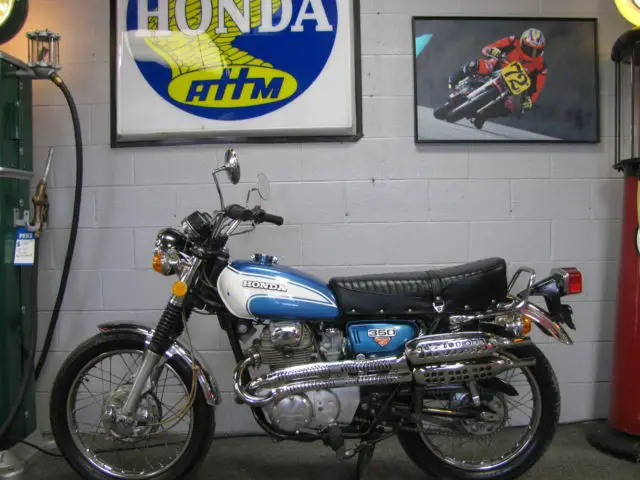 1973 Honda CL350New IRC tires front and rear. with new tubesForks rebuilt. new seals installedNew chainNo tears in seatNice chromeTank clean inside. and outCarbs cleaned. rebuilt. synched. and tunedAll electrical works as it shouldElectric. and kick startValves adjustedPoints setFresh oil changeStarts. runs. shifts. stops. and rides greatThis is a great little CL350 that is ready to ride. it needs nothing. This bike can be a daily rider as is. or is a great platform for a complete restoration. These CL's are getting harder. and harder to find in good shape. We are a motorcycle dealership specializing in vintage Honda's. nbsp;our shop has been in business since 1962. We have Honda certified technicians on staff. This can be seen in person in our showroom at Redline Powersports 9289 N Clinton St Fort Wayne IN 46825. or feel free to call us at 260-483-2798 to discuss any of our bikes for sale. This has a very reasonable reserve. so bid to buy. Shipping is the responsibility of the buyer. I will not make arrangements. IN residents will be charged sales tax. On Mar-04-15 at 05:38:27 PST. seller added the following information:The exhaust has been repaired under the heat shield. It is solid. and a quality repair. but I wanted to call it out. as it is very hard to see.