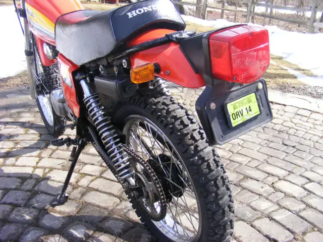 HELLO I HAVE A VERY NICE 1979 HONDA XR125S FOR SALE. I BOUGHT THIS BIKE LAST YEAR LOOKED TO HAVE BEEN SITTING FOR SOME TIME SO I GAVE IT A TUNE-UP CHANGED THE OIL CLEANED THE CARB INSTALLED A NEW BATTERY AND IT STARTED RIGHT UP. THE BIKE RUNS GOOD STARTS EASY IDLES NICE GOOD POWER I ROAD THE BIKE LAST YEAR AND SOME THIS YEAR. FUN BIKE TO RIDE GOOD POWER FOR A 125. EVERYTHING ON THE BIKE WORKS LIGHTS BLINKERS HORN. BIKE SHOWS 750 MILES I HAVE NO IDEA IF THEY ARE RIGHT BUT THE SPEEDOMETER WORKED WHEN I GOT IT AND THE TIRES ARE ORIGINAL AND HAVE GREAT TREAD SO I HAVE NO REASON TO THINK THEY ARE WRONG. THE BIKE RUNS OUT NICE ITS A SIX SPEED AND ALL GEARS WORK GREAT. THE SPEEDOMETER HOUSING HAS A CRACK AND THE TRIP METER NOB IS BROKE STILL RESETS JUST NEEDS A NEW PLASTIC NOB. THIS IS A VERY NICE BIKE PAINT LOOKS NICE GOOD FENDERS NICE SEAT. PLEASE LOOK AT THE PICS AND ASK QUESTIONS BEFORE YOU BID. THIS IS A NICE BIKE BUT ITS NOT NEW SO DO NOT THINK IT WILL BE. THANKS FOR LOOKING On Mar-19-15 at 18:28:29 PDT. seller added the following information: HELLO I WOULD LIKE TO ANSWER A FEW QUESTIONS I HAVE BEEN GETTING ABOUT THE BIKE. THE BIKE IS KICK START ONLY NO ELECTRIC START. THE BIKE IS A FOUR STROKE. I HAVE NO IDEA IF ALL THE PARTS ARE ORIGINAL THE BIKE IS 36 YEARS OLD. BEEN GETTING A LOT OF QUESTIONS ABOUT THE CONDITION OF THE BIKE. THE BIKE RUNS AND LOOKS GOOD BUT IT IS BY NO MEANS A SHOW BIKE. IF SOMEONE NEEDS PHOTOS OF ANY PART BEFORE YOU BID JUST LET ME KNOW. IF YOU NEED A GOOD BIKE TO RUN AROUND TOWN ON OR DO A LITTLE TRAIL RIDDING OR EVEN A VINTAGE CLASS ENDURO BIKE THIS IS THE BIKE. SO PLEASE ASK ANY QUESTIONS BEFORE YOU BID WE WILL BOTH BE HAPPY IN THE END THAT WAY. ( SORRY TO THE BIDDERS FROM THE LAST TIME LISTED I MISSPLACED THE TITLE AND STOPPED THE AUCTION TO GET A REPLACEMENT. I HAVE ADDED A PIC OF THE NEW TITLE THANKS)