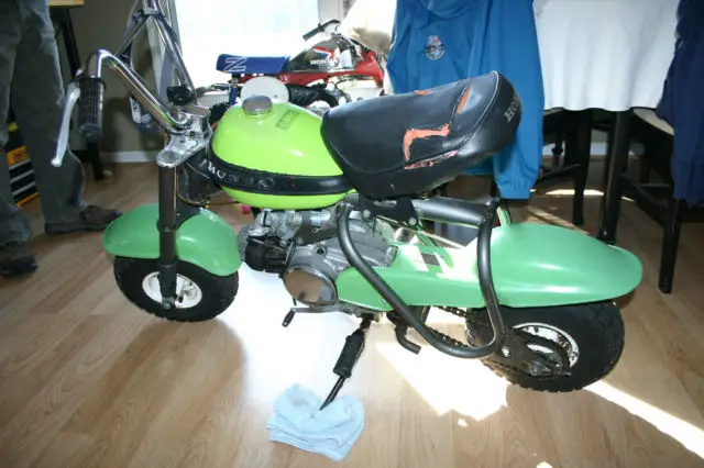 1971 Honda QA50- Original Green Paint with minor scuffs and scratches. Original Fenders that have minor cracks- seen in pictures Original Tank Band with minor damage from heat. Bike Runs perfect and transmission is in great shape. NO SECOND GEAR ISSUE. Original seat cover with damage from being old but is original to the bike. No tool kit. Gas tank is good shape. has had minor leak repairs in the past but is clean inside. Cables operate properly. Brakes are in good shape. Tires are in good shape. It has fresh oil and tune up including spark plug and new coil pack installed. Brakes are good. tires are good. Engine and Frame # QA50E-A A46446 QA50 1046037Great for Restoration project or to ride. Buyer is responsible for all shipping. We will Crate Motorcycle for shipping.