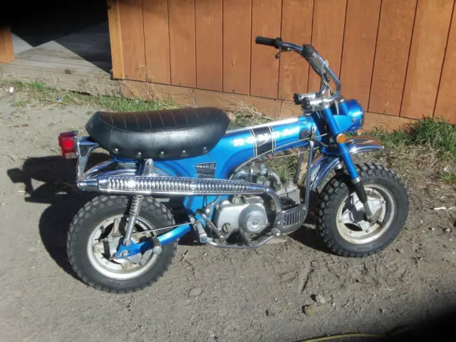1971 Blue Honda CT70 Up for auction is this great little motorcycle. It is a 1971 HONDA CT70. The bike has 1438 original miles. It has gone through the shop and is runs fine. All other functions such as brakes and lights work. Other than a couple of minor spots of rust and dirt the bike is in great condition. The photos will best describe the item. Please note. As my seller name implies. I am a miner. I do not spend much time cleaning or repairing the items I sell. I may wipe off the heavy layers for the photos and that’s about it. Pretty much they are in the condition I find them. gems in the rough. Please feel free to ask questions before bidding. I am happy to combine items to save on shipping. Thank you. INTERNATIONAL BIDDERS MUST PAY INTERNATIONAL SHIPPING FEES. ALSO ALASKA. HAWAII and other non-stateside areas will have higher shipping than quoted. I am selling two other CT 70s this week so if you are interested in a multiple purchase contact me. There can be a considerable savings in shipping and we can offer a discount on the purchase price if more than one bike is bought. We will help facilitate getting the bikes to a shipper of the buyer’s choice. Buyer is to arrange shipping and pay for freight charges.