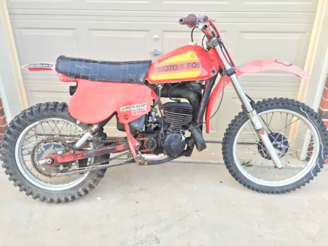 I have an old race bike here. a 1978 CR250R Honda with "MOTO X FOX" equipped suspension. the rear shocks are in need of rebuild. replacement or such before jumping etc. The bike runs. Starts on first or 2nd kick usually. has really good and tight compression. selling this old race bike as I am clearing out my toys. Check my other auctions for some good VINTAGE bikes. This bike comes as is pictured. not perfect but not the worst out there. with little effort you could vintage race this or store in collection as is. or decide to restore it. Someone repainted the engine and such black. I feel it can be power washed off or rubbed off carefully. the red paint is under the black paint. You get what you see. do not know exact hours on bike. and there is no title. I RODE THIS AROUND THE BLOCK A FEW TIMES THE DAY I AM LISTING IT! Thanks. Payment: $500 deposit within 24 hours of auction end. the rest via paypal direct. cash in person or overnight certified bank check within 3 days of auction end bike must be paid or email me with a request on payment. Bike is located in zip: 67226 Wichita. Kansas. for shipping. I SELL AND SHIP WORLDWIDE! All costs are on buyer. I will store for free for 1 month once it is paid in full. At the end of the day this bike does run and ride. you are getting what you see. please don't kick the tires or beat me down. nbsp;this is a NO RESERVE auction. highest bidder will win. I also am selling vintage CR80. CR450R. R5 350 Yamaha. and a few old CL450's x2. and an orange CL175. Check my other auctions asap. Thanks and please ask any questions. I can usually reply within 5 mins. Thanks. God bless and good luck bidding!! NO RESERVE!