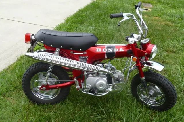 This CT70 is the Rare Pre-Production Silver Tag. New everything including the 3 Stage Candy Ruby Red Paint. Many upgrades make this bike a one of a kind that you can ride or display in your office to admire. Everything new that was needed. tires. rims and hubs. nbsp; forks and shocks tuned for the adult rider. New seat. bars. grips. decals. controls. cables. lights. fenders. reflectors. chain and sprockets. Honda grab bar. nbsp; engine guard and exhaust. I do all the motors myself and everything needed was replaced making this bike turn key and ready to ride. Ask about Big Bore Kits and more if you are interested. Feel free to contact me for better pictures or questions anytime by going to my ebay ID and finding my contact info there. I can be reached via phone (931-239-0850) if you have questions about this bike or the other Classic Honda's I have for sale. I have CT's (3 and 4 speed H bikes) 1st Gen XR75's. SL350's and a SL175 both 1971 K1 bikes and some custom builds as well. All reasonable offers will be entertained. Bike comes with a Tenn title and a new Honda tool kit. Don't fall for the tale that it's easy to get the title with a "Bill of Sale". My bikes are street legal in all 50 states. This classic bike includes FREE shipping to the lower 48 states when you pay the Buy It Now price. all others must arrange payment for shipping but I will help as much as I can to get the bike to you. I have used uship with great success and offer free quotes on door to door shipping. I have been selling my bikes on ebay for years and my feedback shows it. I make it easy so hit the Buy It Now and let me do the rest. If you want one in every color then we can arrange that also. Local pickup is fine and I can even meet you down the road a 100 miles or so free of charge. Happy Trails 2 Ya. I have used uship for years with great success. Local pickup is fine also. Hit the "Buy It Now" for free shipping in Lower 48 states. All others read shipping details.