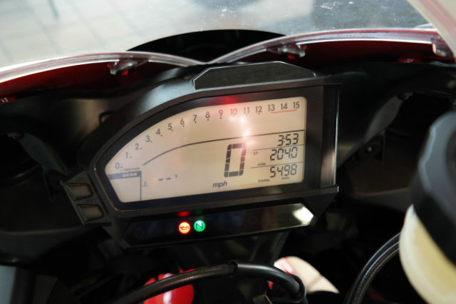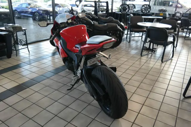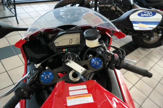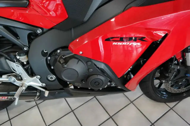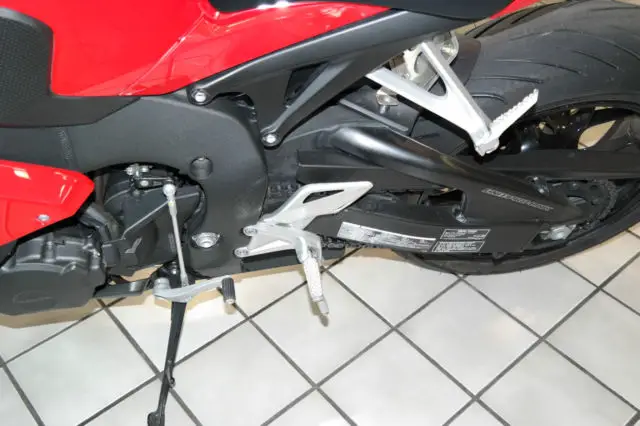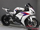 Engine Type:999. 8cc liquid-cooled inline four-cylinder Bore and Stroke:76mm x 55. 1mm Compression ratio:12. 3:1 Valve Train:DOHC; four valves per cylinder Induction:Programmed Dual Stage Fuel Injection (PGM-DSFI) with 46mm throttle bodies. Denso 12-hole injectors Ignition:Computer-controlled digital transistorized with 3-D mapping Transmission:Close-ratio six-speed Final Drive:#530 O-ring-sealed chain Suspension Front: 43mm inverted Big Piston Fork with spring preload. rebound and compression damping adjustability; 4. 3 inches travel Rear: Unit Pro-Link Balance-Free Rear Shock with spring preload. rebound and compression damping adjustability; 5. 4 inches travel Brakes Front: Dual radial-mounted four-piston calipers with full-floating 320mm discs Rear: Single-caliper 220mm disc; Optional Honda Electronic Combined ABS TiresFront: 120/70ZR-17 radial Rear: 190/50ZR-17 radial Wheelbase:55. 5 inches Rake (Caster Angle):23° 3' Trail:96. 0mm (3. 8 inches) Seat Height:32. 3 inches Fuel Capacity:4. 7 gallons. including 1. 06-gallon reserve Estimated Fuel Economy**:35 MPG