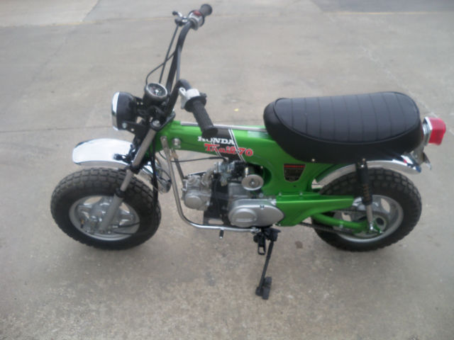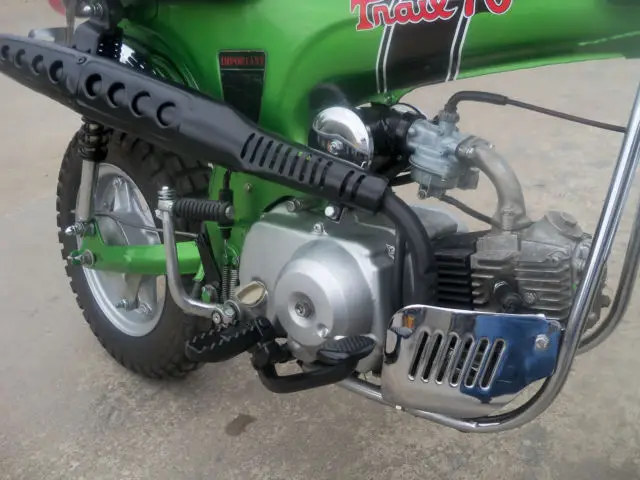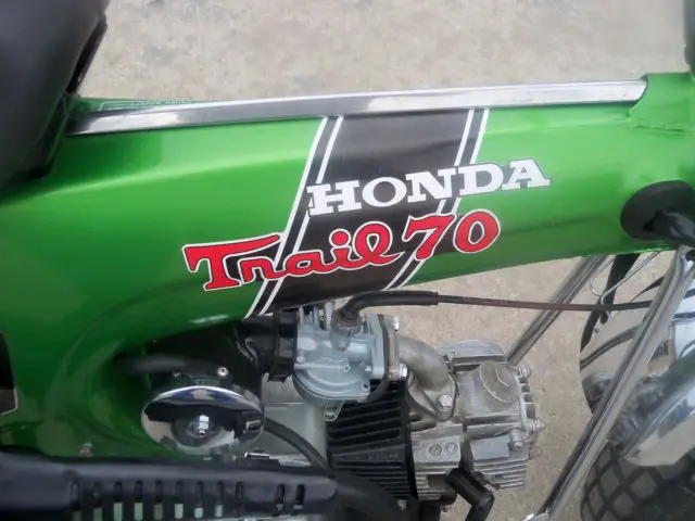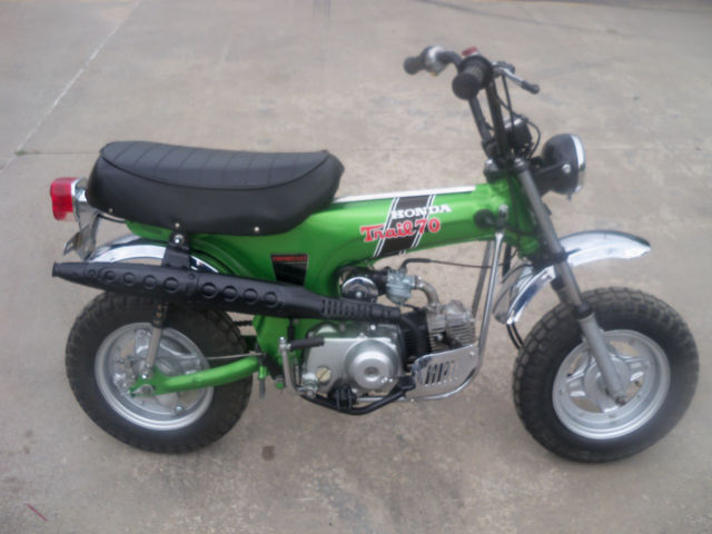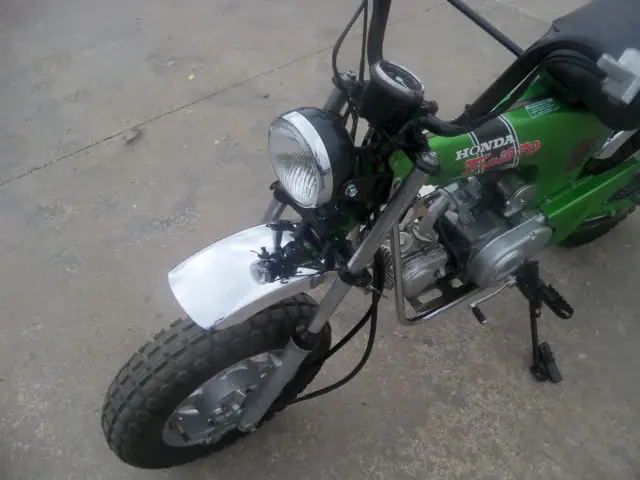 Up for auction at NO RESERVEis this nice 1980 Honda CT 70 the bike was to Green when I purchased it the paint is not perfect but still really nice.The Bike comes with the following new parts Front and rear fenders light scratches on front fendernew tail lightnew wiringnew ignitionnew speedometer cable new Battery new seat cover (not shown on bike) new carburetor new spark plug new condenser and points. The bikes runs and drivesreal good and everything works on it.The front forks have a little rust.Tires are in good shape and you should get plenty of miles out of them.This bike all in all is a nice bike not perfect but something you can take out back or on the streets and ride. The bike will be sold at no reserve and with BILL OF SALE .Please email me if you have any questions.