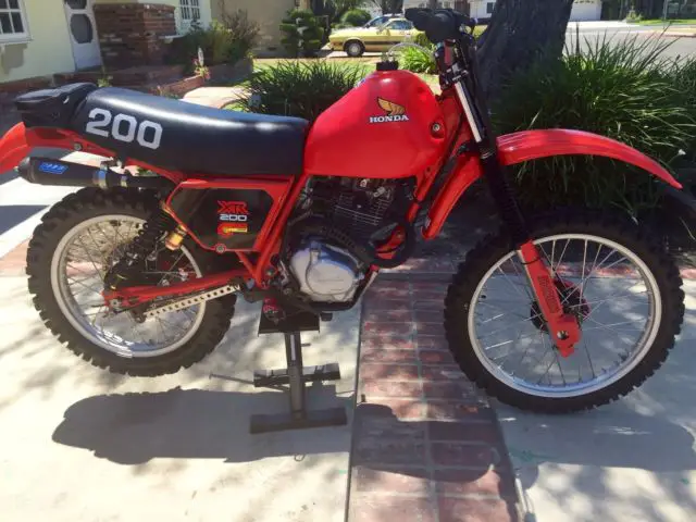 You are looking at a classic rare 1982 model. These are near extinct these days in stock form which this is set up as it used to be back in the day. Here is what has been done. 1) nos clark gas tank 2) D.I.D rims from 1982 honda XR500 completely redone with new stainless heavy duty spokes. 3) 1982 aluminum Honda XR500 handlebars 4) 1982 roger decoster "Debruzer" handlebar pad 5) nos 1/4 turn hi-performance throttle 6) 1982 baja number plate 7) nos gas charge rear piggy back shocks 8) new tires and heavy duty tubes 9) custom rear fender tool bag ( did not come on standard model xr200 10) nos supertrapp rear exhaust silencer 11) 1982 hrc honda aluminum rear brake stay ( not available on standard xr200 12) gold type racing chain