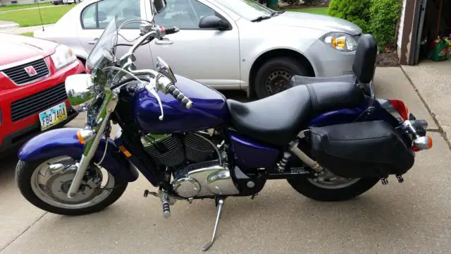Pearl Purple Ghost Flames The Engine is an 1100cc liquid-cooled V-twin, OHC, -valves per cylinder, nbsp;5 speed transmission, hrome engine covers, little over 12kUp Grades include Saddle Bags, ack rest, witchblade Windshield, ender mounted running lights, rake Light Modulator Custom Grips. Runs great needs some cosmetic work $3200 OBO.Please ask any questions you have before bidding.